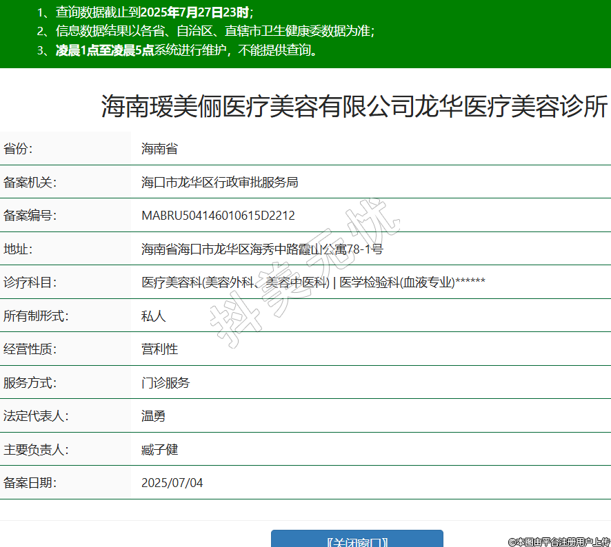 海南璦美儷醫(yī)療美容有限公司龍華醫(yī)療美容診所,診療科目:醫(yī)療美容科(美容外科、美容中醫(yī)科) | 醫(yī)學(xué)檢驗科(血液專業(yè))******