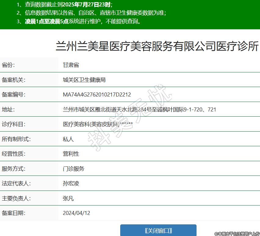 蘭州蘭美星醫(yī)療美容服務(wù)有限公司醫(yī)療診所