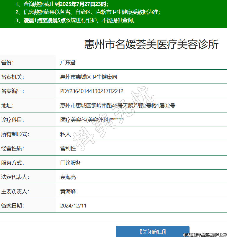 省份:廣東省備案機(jī)關(guān):惠州市惠城區(qū)衛(wèi)生健康局備案編號:PDY23640144130217D2212地址:惠州市惠城區(qū)鵝嶺南路48號天鵝芳邨2號樓1層02號診療科目:醫(yī)療美容科(美容外科)******所有制形式:私人經(jīng)營性質(zhì):營利性服務(wù)方式:門診服務(wù)法定代表人:袁海亮主要負(fù)責(zé)人:黃海峰備案日期:2024/12/11 -