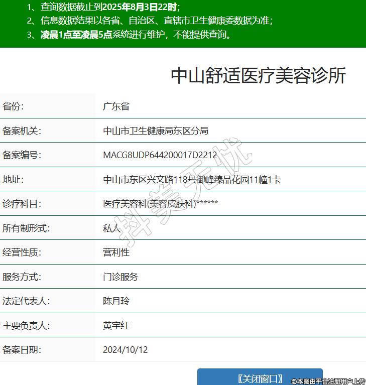 省份:廣東省備案機(jī)關(guān):中山市衛(wèi)生健康局東區(qū)分局備案編號(hào):MACG8UDP644200017D2212地址:中山市東區(qū)興文路118號(hào)御峰臻品花園11幢1卡診療科目:醫(yī)療美容科(美容皮膚科)******所有制形式:私人經(jīng)營(yíng)性質(zhì):營(yíng)利性服務(wù)方式:門診服務(wù)法定代表人:陳月玲主要負(fù)責(zé)人:黃宇紅備案日期:2024/10/12 -