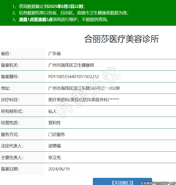 省份:廣東省備案機(jī)關(guān):廣州市海珠區(qū)衛(wèi)生健康局備案編號(hào):PDY10055544010515D2212地址:廣州市海珠區(qū)濱江東路586號(hào)之一202房診療科目:醫(yī)療美容科(美容皮膚科美容外科)******所有制形式:私人經(jīng)營(yíng)性質(zhì):營(yíng)利性服務(wù)方式:門診服務(wù)法定代表人:梁德福主要負(fù)責(zé)人:張立憲備案日期:2024/06/19 -