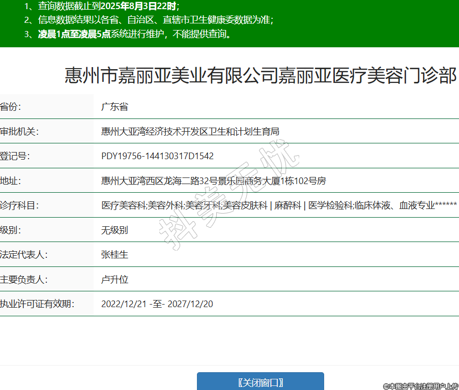惠州市嘉麗亞美業(yè)有限公司嘉麗亞醫(yī)療美容門(mén)診部