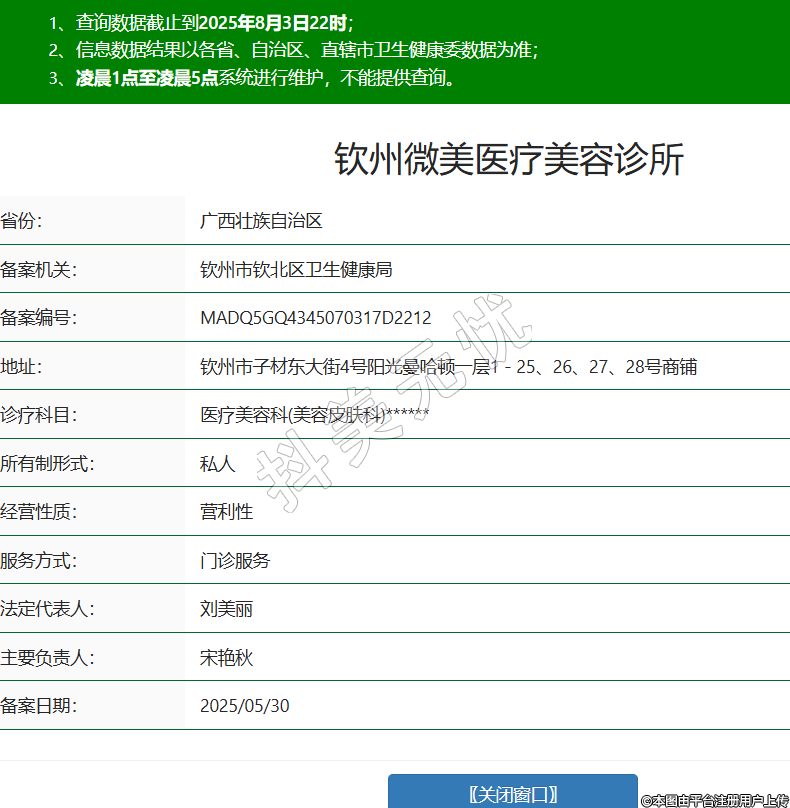 欽州微美醫(yī)療美容診所,診療科目:醫(yī)療美容科(美容皮膚科)******