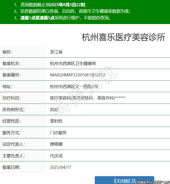 杭州喜樂(lè)醫(yī)療美容診所,診療科目:醫(yī)療美容科(美容皮膚科、美容外科)******