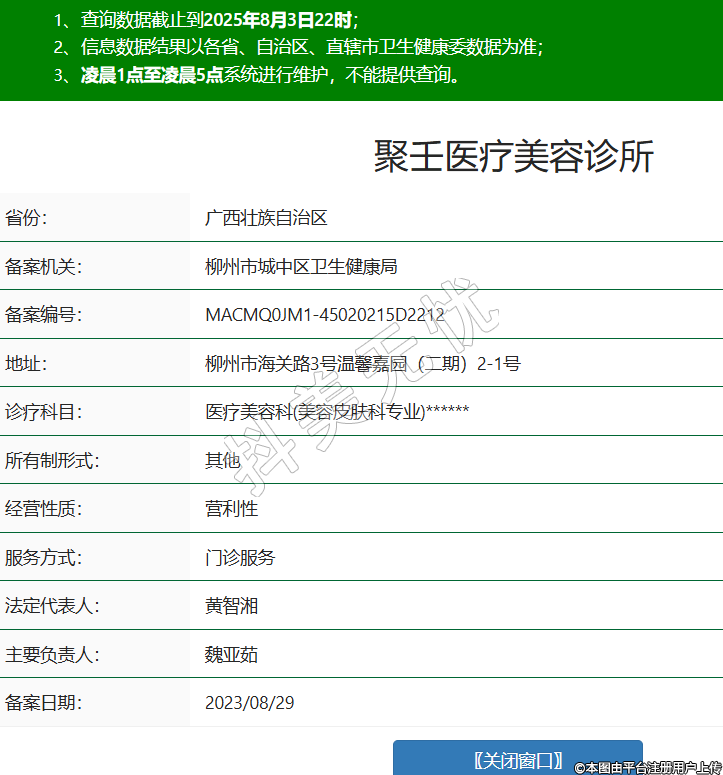 省份:廣西壯族自治區(qū)備案機(jī)關(guān):柳州市城中區(qū)衛(wèi)生健康局備案編號(hào):MACMQ0JM1-45020215D2212地址:柳州市海關(guān)路3號(hào)溫馨嘉園(二期)2-1號(hào)診療科目:醫(yī)療美容科(美容皮膚科專(zhuān)業(yè))******所有制形式:其他經(jīng)營(yíng)性質(zhì):營(yíng)利性服務(wù)方式:門(mén)診服務(wù)法定代表人:黃智湘主要負(fù)責(zé)人:魏亞茹備案日期:2023/08/29 -