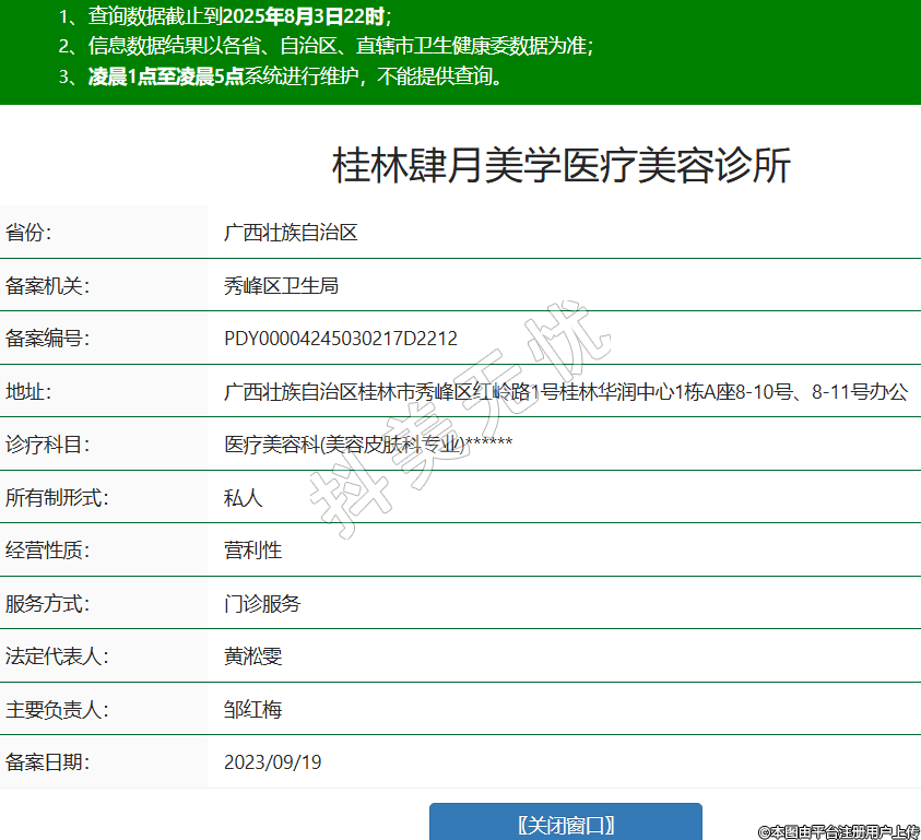 省份:廣西壯族自治區(qū)備案機(jī)關(guān):秀峰區(qū)衛(wèi)生局備案編號:PDY00004245030217D2212地址:廣西壯族自治區(qū)桂林市秀峰區(qū)紅嶺路1號桂林華潤中心1棟A座8-10號、8-11號辦公診療科目:醫(yī)療美容科(美容皮膚科專業(yè))******所有制形式:私人經(jīng)營性質(zhì):營利性服務(wù)方式:門診服務(wù)法定代表人:黃淞雯主要負(fù)責(zé)人:鄒紅梅備案日期:2023/09/19 -
