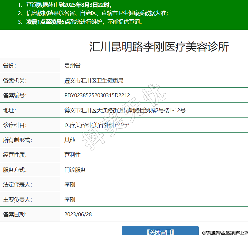 省份:貴州省備案機(jī)關(guān):遵義市匯川區(qū)衛(wèi)生健康局備案編號:PDY02385252030315D2212地址:遵義市匯川區(qū)大連路街道昆明路世貿(mào)城2號樓1-12號診療科目:醫(yī)療美容科(美容外科)******所有制形式:其他經(jīng)營性質(zhì):營利性服務(wù)方式:門診服務(wù)法定代表人:李剛主要負(fù)責(zé)人:李剛備案日期:2023/06/28 -