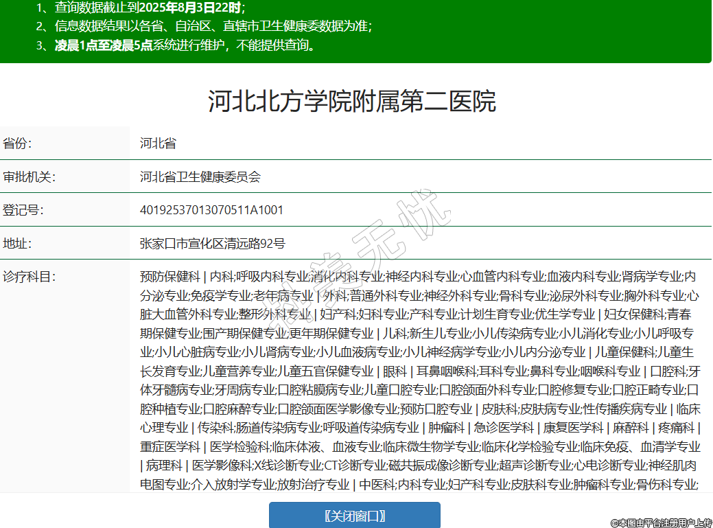 省份:河北省審批機(jī)關(guān):河北省衛(wèi)生健康委員會登記號:40192537013070511A1001地址:張家口市宣化區(qū)清遠(yuǎn)路92號診療科目:預(yù)防保健科 | 內(nèi)科;呼吸內(nèi)科專業(yè);消化內(nèi)科專業(yè);神經(jīng)內(nèi)科專業(yè);心血管內(nèi)科專業(yè);血液內(nèi)科專業(yè);腎病學(xué)專業(yè);內(nèi)分泌專業(yè);免疫學(xué)專業(yè);老年病專業(yè) | 外科;普通外科專業(yè);神經(jīng)外科專業(yè);骨科專業(yè);泌尿外科專業(yè);胸外科專業(yè);心臟大血管外科專業(yè);整形外科專業(yè) | 婦產(chǎn)科;婦科專業(yè);產(chǎn)科專業(yè);計劃生育專業(yè);優(yōu)生學(xué)專業(yè) | 婦女保健科;青春期保健專業(yè);圍產(chǎn)期保健專業(yè);更年期保健專業(yè) | 兒科;新生兒專業(yè);小兒傳染病專業(yè);小兒消化專業(yè);小兒呼吸專業(yè);小兒心臟病專業(yè);小兒腎病專業(yè);小兒血液病專業(yè);小兒神經(jīng)病學(xué)專業(yè);小兒內(nèi)分泌專業(yè) | 兒童保健科;兒童生長發(fā)育專業(yè);兒童營養(yǎng)專業(yè);兒童五官保健專業(yè) | 眼科 | 耳鼻咽喉科;耳科專業(yè);鼻科專業(yè);咽喉科專業(yè) | 口腔科;牙體牙髓病專業(yè);牙周病專業(yè);口腔粘膜病專業(yè);兒童口腔專業(yè);口腔頜面外科專業(yè);口腔修復(fù)專業(yè);口腔正畸專業(yè);口腔種植專業(yè);口腔麻醉專業(yè);口腔頜面醫(yī)學(xué)影像專業(yè);預(yù)防口腔專業(yè) | 皮膚科;皮膚病專業(yè);性傳播疾病專業(yè) | 臨床心理專業(yè) | 傳染科;腸道傳染病專業(yè);呼吸道傳染病專業(yè) | 腫瘤科 | 急診醫(yī)學(xué)科 | 康復(fù)醫(yī)學(xué)科 | 麻醉科 | 疼痛科 | 重癥醫(yī)學(xué)科 | 醫(yī)學(xué)檢驗科;臨床體液、血液專業(yè);臨床微生物學(xué)專業(yè);臨床化學(xué)檢驗專業(yè);臨床免疫、血清學(xué)專業(yè) | 病理科 | 醫(yī)學(xué)影像科;X線診斷專業(yè);CT診斷專業(yè);磁共振成像診斷專業(yè);超聲診斷專業(yè);心電診斷專業(yè);神經(jīng)肌肉電圖專業(yè);介入放射學(xué)專業(yè);放射治療專業(yè) | 中醫(yī)科;內(nèi)科專業(yè);婦產(chǎn)科專業(yè);皮膚科專業(yè);腫瘤科專業(yè);骨傷科專業(yè);肛腸科專業(yè);老年病科專業(yè);針灸科專業(yè);推拿科專業(yè) | 中西醫(yī)結(jié)合科******級別:三級法定代表人:丁英奇主要負(fù)責(zé)人:執(zhí)業(yè)許可證有效期:2024/04/13 -至- 2029/12/16 -