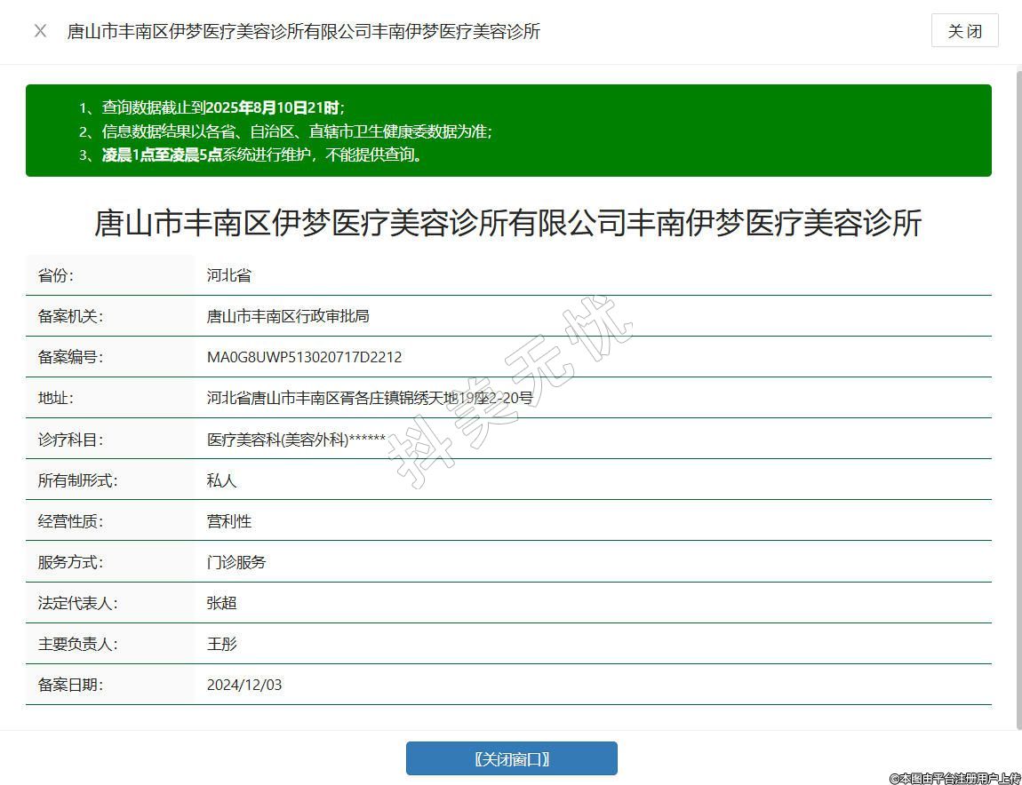 唐山市豐南區(qū)伊夢(mèng)醫(yī)療美容診所有限公司豐南伊夢(mèng)醫(yī)療美容診所