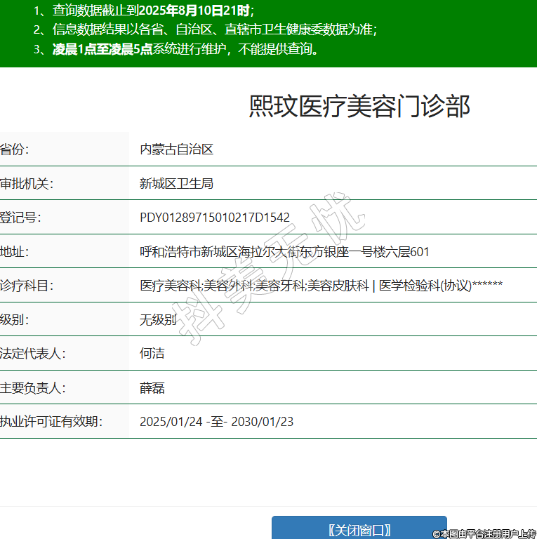 省份:內(nèi)蒙古自治區(qū)審批機(jī)關(guān):新城區(qū)衛(wèi)生局登記號(hào):PDY01289715010217D1542地址:呼和浩特市新城區(qū)海拉爾大街東方銀座一號(hào)樓六層601診療科目:醫(yī)療美容科;美容外科;美容牙科;美容皮膚科 | 醫(yī)學(xué)檢驗(yàn)科(協(xié)議)******級(jí)別:無級(jí)別法定代表人:何潔主要負(fù)責(zé)人:薛磊執(zhí)業(yè)許可證有效期:2025/01/24 -至- 2030/01/23 -