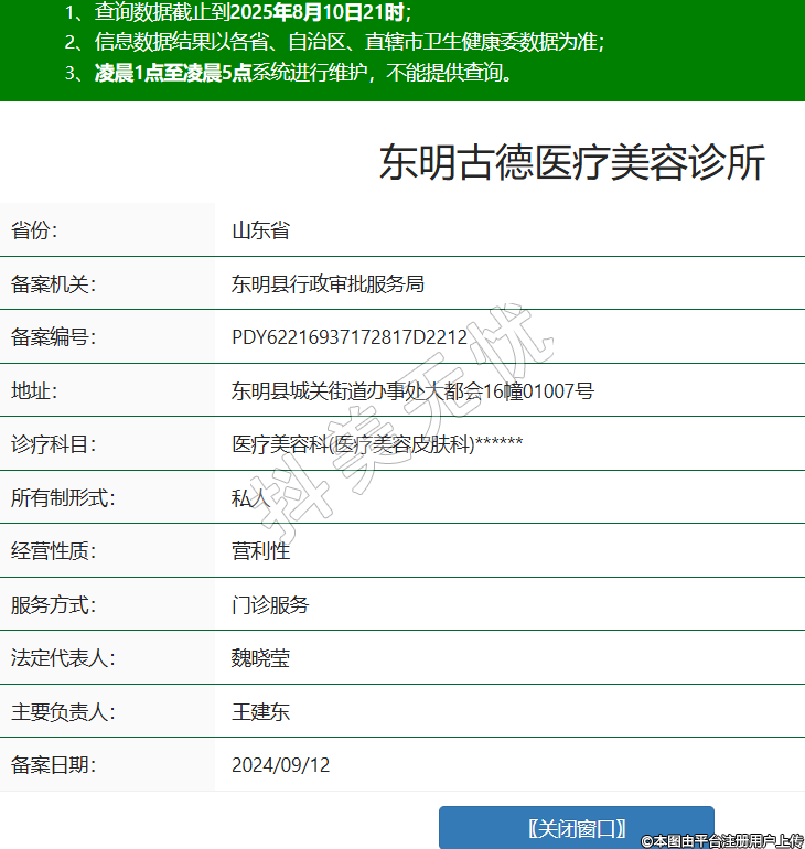 省份:山東省備案機(jī)關(guān):東明縣行政審批服務(wù)局備案編號:PDY62216937172817D2212地址:東明縣城關(guān)街道辦事處大都會16幢01007號診療科目:醫(yī)療美容科(醫(yī)療美容皮膚科)******所有制形式:私人經(jīng)營性質(zhì):營利性服務(wù)方式:門診服務(wù)法定代表人:魏曉瑩主要負(fù)責(zé)人:王建東備案日期:2024/09/12 -