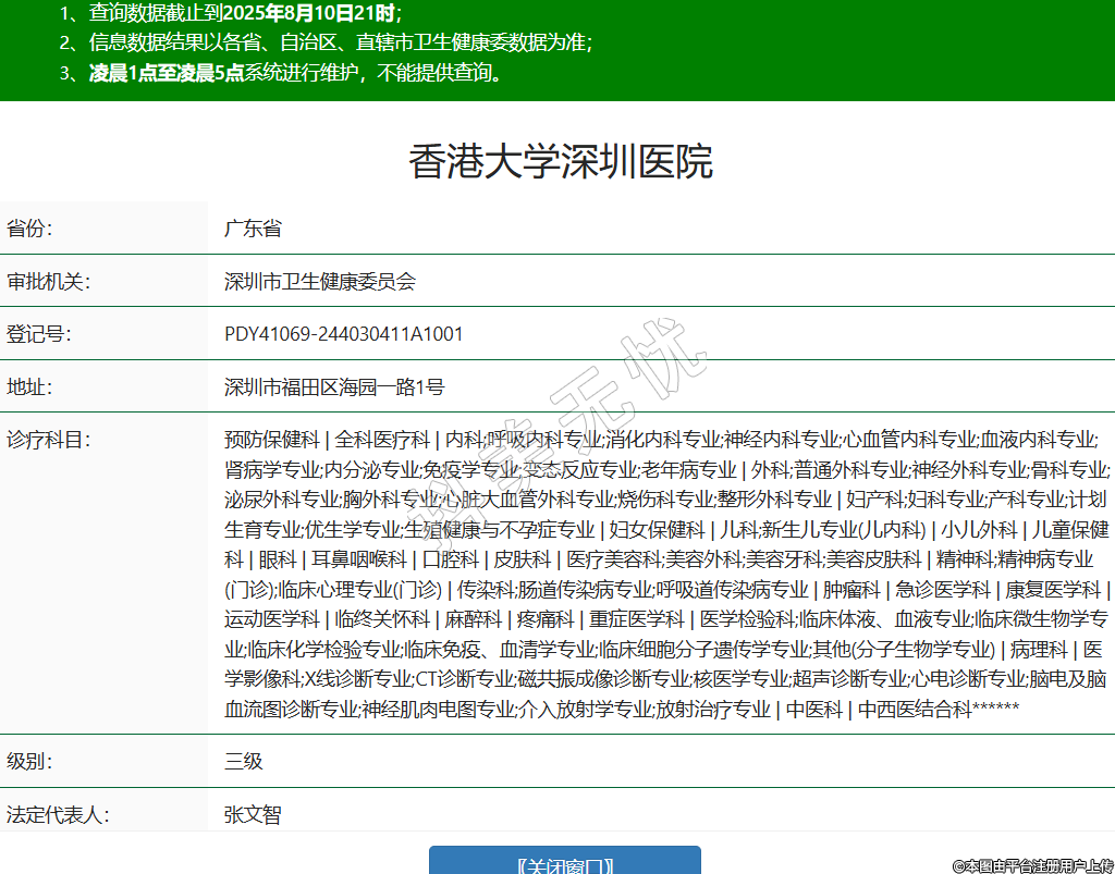 省份:廣東省審批機關(guān):深圳市衛(wèi)生健康委員會登記號:PDY41069-244030411A1001地址:深圳市福田區(qū)海園一路1號診療科目:預(yù)防保健科 | 全科醫(yī)療科 | 內(nèi)科;呼吸內(nèi)科專業(yè);消化內(nèi)科專業(yè);神經(jīng)內(nèi)科專業(yè);心血管內(nèi)科專業(yè);血液內(nèi)科專業(yè);腎病學(xué)專業(yè);內(nèi)分泌專業(yè);免疫學(xué)專業(yè);變態(tài)反應(yīng)專業(yè);老年病專業(yè) | 外科;普通外科專業(yè);神經(jīng)外科專業(yè);骨科專業(yè);泌尿外科專業(yè);胸外科專業(yè);心臟大血管外科專業(yè);燒傷科專業(yè);整形外科專業(yè) | 婦產(chǎn)科;婦科專業(yè);產(chǎn)科專業(yè);計劃生育專業(yè);優(yōu)生學(xué)專業(yè);生殖健康與不孕癥專業(yè) | 婦女保健科 | 兒科;新生兒專業(yè)(兒內(nèi)科) | 小兒外科 | 兒童保健科 | 眼科 | 耳鼻咽喉科 | 口腔科 | 皮膚科 | 醫(yī)療美容科;美容外科;美容牙科;美容皮膚科 | 精神科;精神病專業(yè)(門診);臨床心理專業(yè)(門診) | 傳染科;腸道傳染病專業(yè);呼吸道傳染病專業(yè) | 腫瘤科 | 急診醫(yī)學(xué)科 | 康復(fù)醫(yī)學(xué)科 | 運動醫(yī)學(xué)科 | 臨終關(guān)懷科 | 麻醉科 | 疼痛科 | 重癥醫(yī)學(xué)科 | 醫(yī)學(xué)檢驗科;臨床體液、血液專業(yè);臨床微生物學(xué)專業(yè);臨床化學(xué)檢驗專業(yè);臨床免疫、血清學(xué)專業(yè);臨床細胞分子遺傳學(xué)專業(yè);其他(分子生物學(xué)專業(yè)) | 病理科 | 醫(yī)學(xué)影像科;X線診斷專業(yè);CT診斷專業(yè);磁共振成像診斷專業(yè);核醫(yī)學(xué)專業(yè);超聲診斷專業(yè);心電診斷專業(yè);腦電及腦血流圖診斷專業(yè);神經(jīng)肌肉電圖專業(yè);介入放射學(xué)專業(yè);放射治療專業(yè) | 中醫(yī)科 | 中西醫(yī)結(jié)合科******級別:三級法定代表人:張文智主要負責人:***執(zhí)業(yè)許可證有效期:2021/11/05 -至- 2036/11/04 -