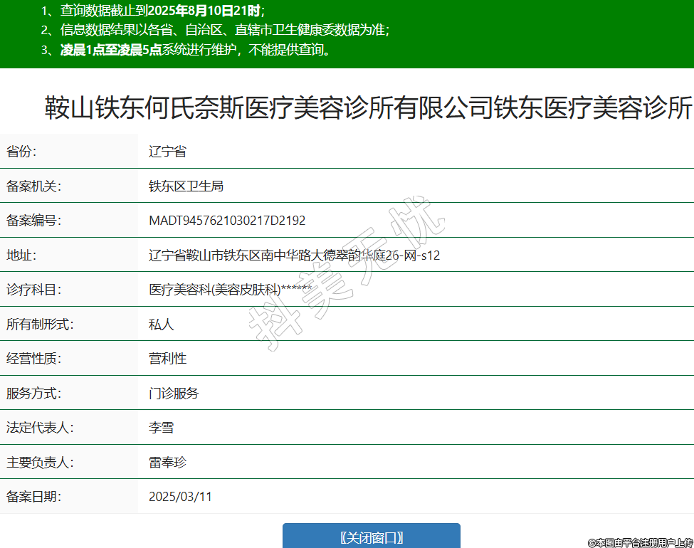 鞍山鐵東何氏奈斯醫(yī)療美容診所有限公司鐵東醫(yī)療美容診所