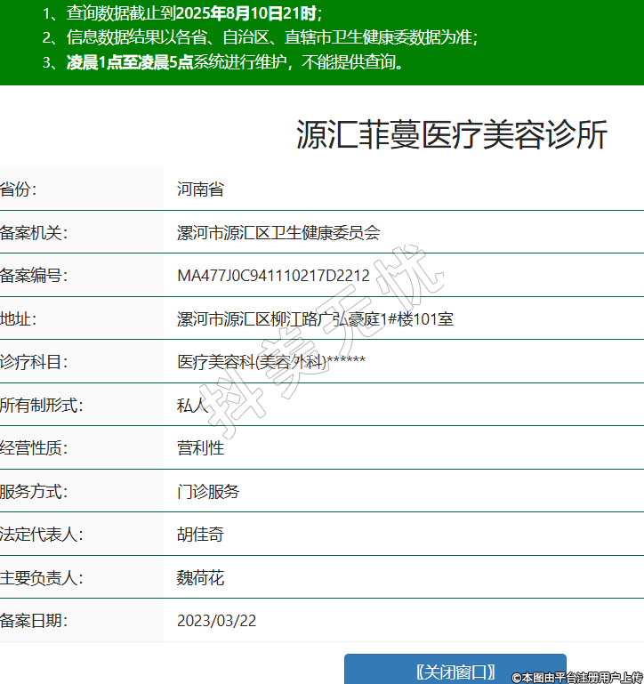 省份:河南省備案機關(guān):漯河市源匯區(qū)衛(wèi)生健康委員會備案編號:MA477J0C941110217D2212地址:漯河市源匯區(qū)柳江路廣弘豪庭1#樓101室診療科目:醫(yī)療美容科(美容外科)******所有制形式:私人經(jīng)營性質(zhì):營利性服務(wù)方式:門診服務(wù)法定代表人:胡佳奇主要負責人:魏荷花備案日期:2023/03/22 -