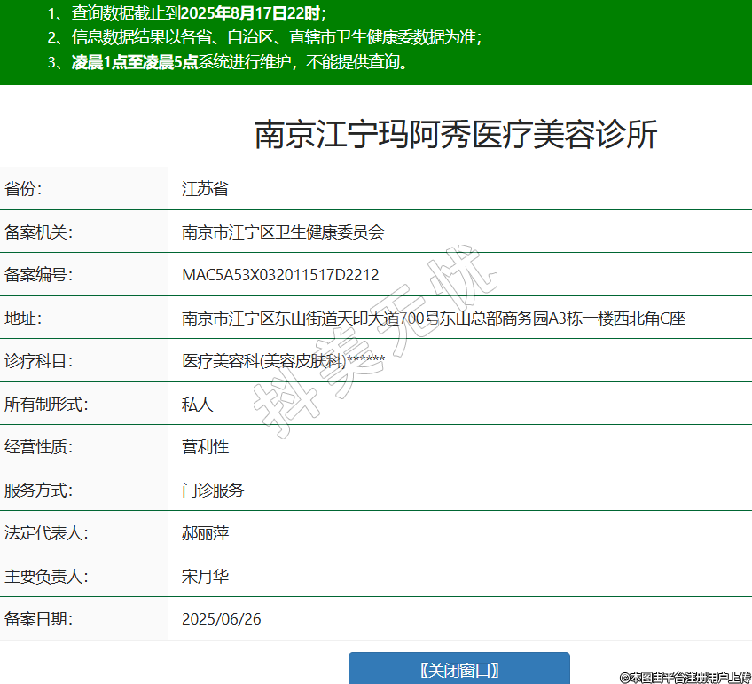 南京江寧瑪阿秀醫(yī)療美容診所,診療科目:醫(yī)療美容科(美容皮膚科)******