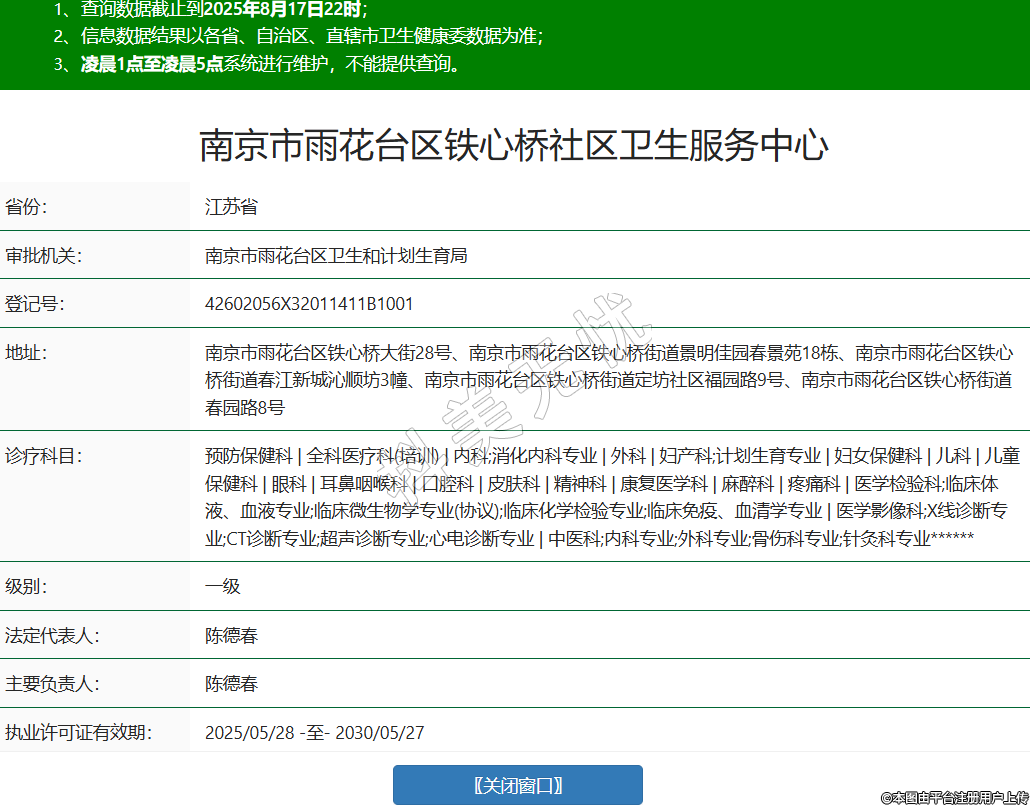 省份:江蘇省審批機(jī)關(guān):南京市雨花臺區(qū)衛(wèi)生和計(jì)劃生育局登記號:42602056X32011411B1001地址:南京市雨花臺區(qū)鐵心橋大街28號、南京市雨花臺區(qū)鐵心橋街道景明佳園春景苑18棟、南京市雨花臺區(qū)鐵心橋街道春江新城沁順坊3幢、南京市雨花臺區(qū)鐵心橋街道定坊社區(qū)福園路9號、南京市雨花臺區(qū)鐵心橋街道春園路8號診療科目:預(yù)防保健科 | 全科醫(yī)療科(培訓(xùn)) | 內(nèi)科;消化內(nèi)科專業(yè) | 外科 | 婦產(chǎn)科;計(jì)劃生育專業(yè) | 婦女保健科 | 兒科 | 兒童保健科 | 眼科 | 耳鼻咽喉科 | 口腔科 | 皮膚科 | 精神科 | 康復(fù)醫(yī)學(xué)科 | 麻醉科 | 疼痛科 | 醫(yī)學(xué)檢驗(yàn)科;臨床體液、血液專業(yè);臨床微生物學(xué)專業(yè)(協(xié)議);臨床化學(xué)檢驗(yàn)專業(yè);臨床免疫、血清學(xué)專業(yè) | 醫(yī)學(xué)影像科;X線診斷專業(yè);CT診斷專業(yè);超聲診斷專業(yè);心電診斷專業(yè) | 中醫(yī)科;內(nèi)科專業(yè);外科專業(yè);骨傷科專業(yè);針灸科專業(yè)******級別:一級法定代表人:陳德春主要負(fù)責(zé)人:陳德春執(zhí)業(yè)許可證有效期:2025/05/28 -至- 2030/05/27 -