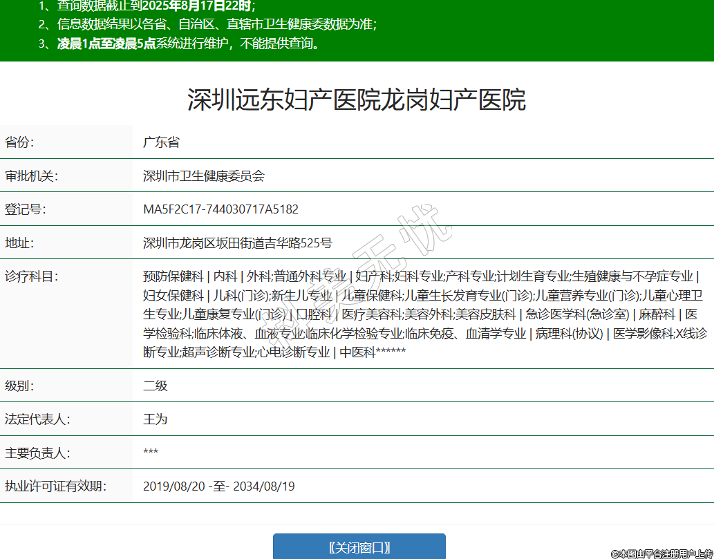 省份:廣東省審批機(jī)關(guān):深圳市衛(wèi)生健康委員會(huì)登記號(hào):MA5F2C17-744030717A5182地址:深圳市龍崗區(qū)坂田街道吉華路525號(hào)診療科目:預(yù)防保健科 | 內(nèi)科 | 外科;普通外科專(zhuān)業(yè) | 婦產(chǎn)科;婦科專(zhuān)業(yè);產(chǎn)科專(zhuān)業(yè);計(jì)劃生育專(zhuān)業(yè);生殖健康與不孕癥專(zhuān)業(yè) | 婦女保健科 | 兒科(門(mén)診);新生兒專(zhuān)業(yè) | 兒童保健科;兒童生長(zhǎng)發(fā)育專(zhuān)業(yè)(門(mén)診);兒童營(yíng)養(yǎng)專(zhuān)業(yè)(門(mén)診);兒童心理衛(wèi)生專(zhuān)業(yè);兒童康復(fù)專(zhuān)業(yè)(門(mén)診) | 口腔科 | 醫(yī)療美容科;美容外科;美容皮膚科 | 急診醫(yī)學(xué)科(急診室) | 麻醉科 | 醫(yī)學(xué)檢驗(yàn)科;臨床體液、血液專(zhuān)業(yè);臨床化學(xué)檢驗(yàn)專(zhuān)業(yè);臨床免疫、血清學(xué)專(zhuān)業(yè) | 病理科(協(xié)議) | 醫(yī)學(xué)影像科;X線診斷專(zhuān)業(yè);超聲診斷專(zhuān)業(yè);心電診斷專(zhuān)業(yè) | 中醫(yī)科******級(jí)別:二級(jí)法定代表人:王為主要負(fù)責(zé)人:***執(zhí)業(yè)許可證有效期:2019/08/20 -至- 2034/08/19 -