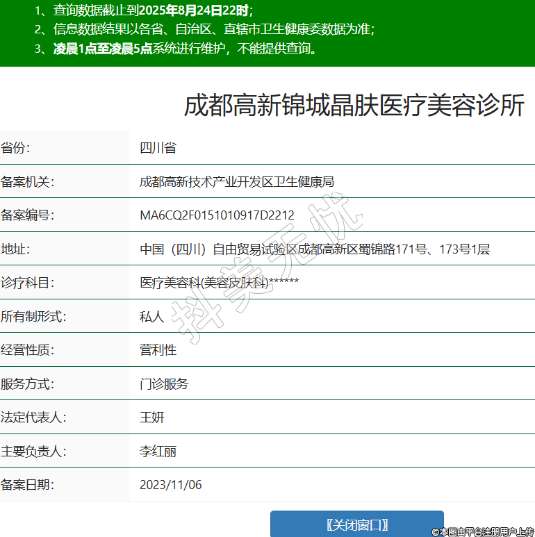 成都高新錦城晶膚醫(yī)療美容診所,診療科目:醫(yī)療美容科(美容皮膚科)******