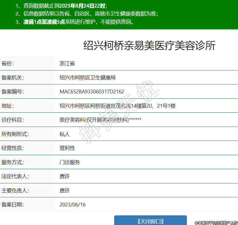 省份:浙江省備案機(jī)關(guān):紹興市柯橋區(qū)衛(wèi)生健康局備案編號:MAC652BA933060317D2162地址:紹興市柯橋區(qū)柯橋街道世茂名流14幢第20、21號1樓診療科目:醫(yī)療美容科(僅開展美容皮膚科)******所有制形式:私人經(jīng)營性質(zhì):營利性服務(wù)方式:門診服務(wù)法定代表人:唐許主要負(fù)責(zé)人:唐許備案日期:2023/06/16 -