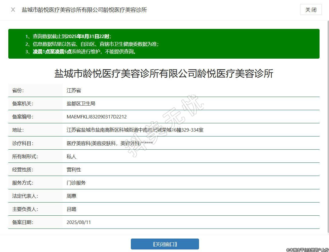 鹽城市齡悅醫(yī)療美容診所有限公司齡悅醫(yī)療美容診所