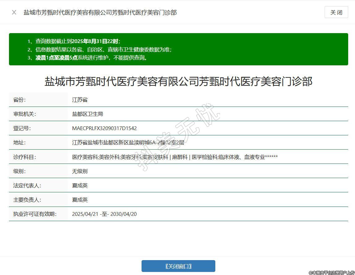 鹽城市芳甄時代醫(yī)療美容有限公司芳甄時代醫(yī)療美容門診部