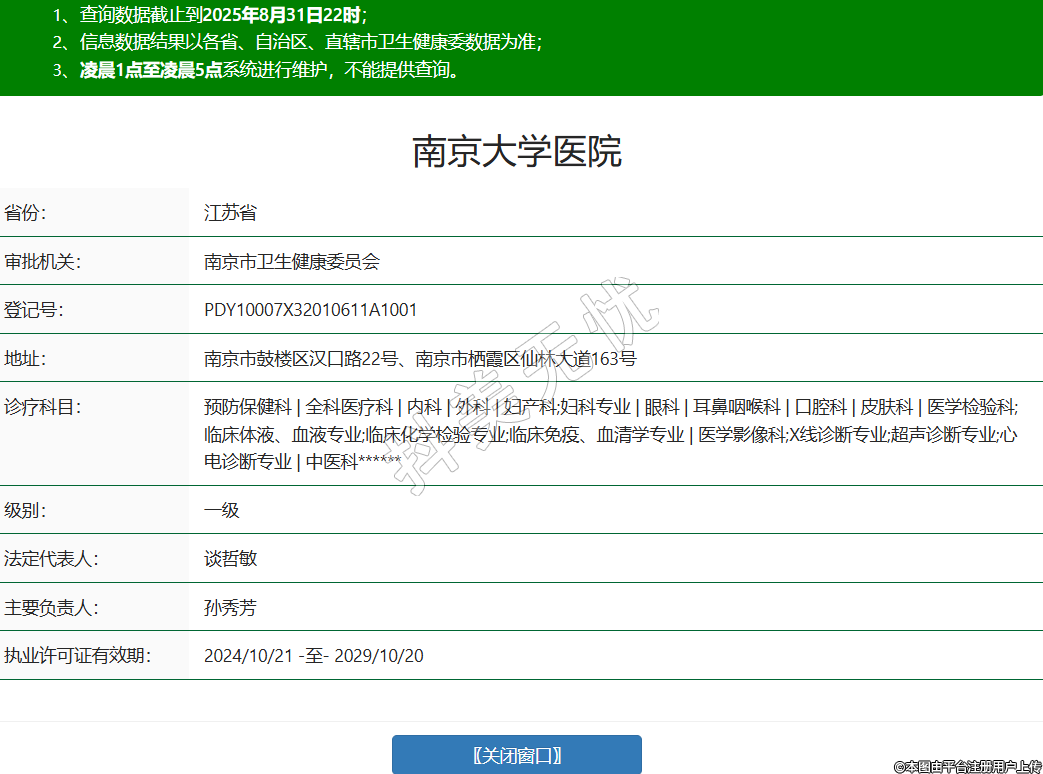 省份:江蘇省審批機(jī)關(guān):南京市衛(wèi)生健康委員會(huì)登記號(hào):PDY10007X32010611A1001地址:南京市鼓樓區(qū)漢口路22號(hào)、南京市棲霞區(qū)仙林大道163號(hào)診療科目:預(yù)防保健科 | 全科醫(yī)療科 | 內(nèi)科 | 外科 | 婦產(chǎn)科;婦科專業(yè) | 眼科 | 耳鼻咽喉科 | 口腔科 | 皮膚科 | 醫(yī)學(xué)檢驗(yàn)科;臨床體液、血液專業(yè);臨床化學(xué)檢驗(yàn)專業(yè);臨床免疫、血清學(xué)專業(yè) | 醫(yī)學(xué)影像科;X線診斷專業(yè);超聲診斷專業(yè);心電診斷專業(yè) | 中醫(yī)科******級(jí)別:一級(jí)法定代表人:談?wù)苊?/div>主要負(fù)責(zé)人:孫秀芳執(zhí)業(yè)許可證有效期:2024/10/21 -至- 2029/10/20暫時(shí)沒有內(nèi)容