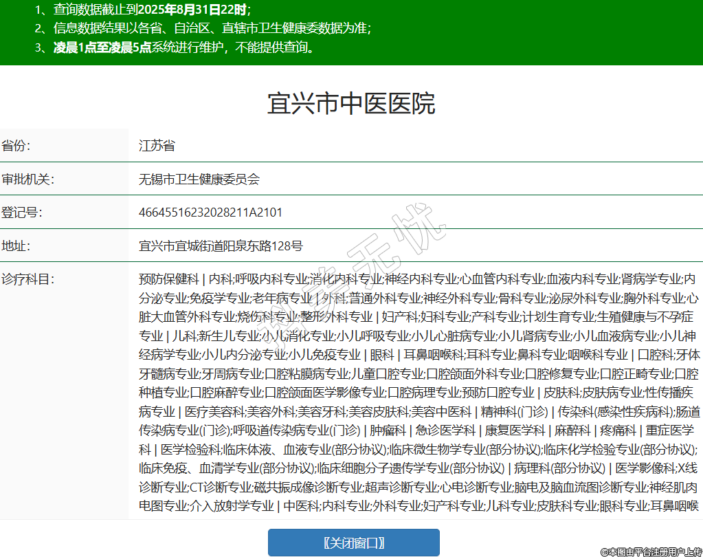 省份:江蘇省審批機(jī)關(guān):無(wú)錫市衛(wèi)生健康委員會(huì)登記號(hào):46645516232028211A2101地址:宜興市宜城街道陽(yáng)泉東路128號(hào)診療科目:預(yù)防保健科 | 內(nèi)科;呼吸內(nèi)科專業(yè);消化內(nèi)科專業(yè);神經(jīng)內(nèi)科專業(yè);心血管內(nèi)科專業(yè);血液內(nèi)科專業(yè);腎病學(xué)專業(yè);內(nèi)分泌專業(yè);免疫學(xué)專業(yè);老年病專業(yè) | 外科;普通外科專業(yè);神經(jīng)外科專業(yè);骨科專業(yè);泌尿外科專業(yè);胸外科專業(yè);心臟大血管外科專業(yè);燒傷科專業(yè);整形外科專業(yè) | 婦產(chǎn)科;婦科專業(yè);產(chǎn)科專業(yè);計(jì)劃生育專業(yè);生殖健康與不孕癥專業(yè) | 兒科;新生兒專業(yè);小兒消化專業(yè);小兒呼吸專業(yè);小兒心臟病專業(yè);小兒腎病專業(yè);小兒血液病專業(yè);小兒神經(jīng)病學(xué)專業(yè);小兒內(nèi)分泌專業(yè);小兒免疫專業(yè) | 眼科 | 耳鼻咽喉科;耳科專業(yè);鼻科專業(yè);咽喉科專業(yè) | 口腔科;牙體牙髓病專業(yè);牙周病專業(yè);口腔粘膜病專業(yè);兒童口腔專業(yè);口腔頜面外科專業(yè);口腔修復(fù)專業(yè);口腔正畸專業(yè);口腔種植專業(yè);口腔麻醉專業(yè);口腔頜面醫(yī)學(xué)影像專業(yè);口腔病理專業(yè);預(yù)防口腔專業(yè) | 皮膚科;皮膚病專業(yè);性傳播疾病專業(yè) | 醫(yī)療美容科;美容外科;美容牙科;美容皮膚科;美容中醫(yī)科 | 精神科(門診) | 傳染科(感染性疾病科);腸道傳染病專業(yè)(門診);呼吸道傳染病專業(yè)(門診) | 腫瘤科 | 急診醫(yī)學(xué)科 | 康復(fù)醫(yī)學(xué)科 | 麻醉科 | 疼痛科 | 重癥醫(yī)學(xué)科 | 醫(yī)學(xué)檢驗(yàn)科;臨床體液、血液專業(yè)(部分協(xié)議);臨床微生物學(xué)專業(yè)(部分協(xié)議);臨床化學(xué)檢驗(yàn)專業(yè)(部分協(xié)議);臨床免疫、血清學(xué)專業(yè)(部分協(xié)議);臨床細(xì)胞分子遺傳學(xué)專業(yè)(部分協(xié)議) | 病理科(部分協(xié)議) | 醫(yī)學(xué)影像科;X線診斷專業(yè);CT診斷專業(yè);磁共振成像診斷專業(yè);超聲診斷專業(yè);心電診斷專業(yè);腦電及腦血流圖診斷專業(yè);神經(jīng)肌肉電圖專業(yè);介入放射學(xué)專業(yè) | 中醫(yī)科;內(nèi)科專業(yè);外科專業(yè);婦產(chǎn)科專業(yè);兒科專業(yè);皮膚科專業(yè);眼科專業(yè);耳鼻咽喉科專業(yè);口腔科專業(yè);腫瘤科專業(yè);骨傷科專業(yè);肛腸科專業(yè);針灸科專業(yè);推拿科專業(yè);康復(fù)醫(yī)學(xué)專業(yè);急診科專業(yè);預(yù)防保健科專業(yè) | 中西醫(yī)結(jié)合科******級(jí)別:三級(jí)法定代表人:馬軍主要負(fù)責(zé)人:馬軍執(zhí)業(yè)許可證有效期:2018/05/31 -至- 2033/05/30 -
