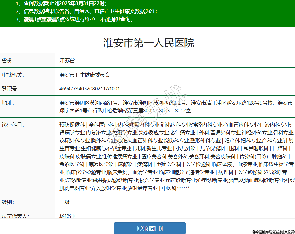 省份:江蘇省審批機關(guān):淮安市衛(wèi)生健康委員會登記號:46947734032080211A1001地址:淮安市淮陰區(qū)黃河西路1號、淮安市淮陰區(qū)黃河西路2-2號、淮安市清江浦區(qū)延安東路128號9號樓、淮安市翔宇南道1號市行政中心后勤樓第三層8002、8003、8012室診療科目:預(yù)防保健科 | 全科醫(yī)療科 | 內(nèi)科;呼吸內(nèi)科專業(yè);消化內(nèi)科專業(yè);神經(jīng)內(nèi)科專業(yè);心血管內(nèi)科專業(yè);血液內(nèi)科專業(yè);腎病學(xué)專業(yè);內(nèi)分泌專業(yè);免疫學(xué)專業(yè);變態(tài)反應(yīng)專業(yè);老年病專業(yè) | 外科;普通外科專業(yè);神經(jīng)外科專業(yè);骨科專業(yè);泌尿外科專業(yè);胸外科專業(yè);心臟大血管外科專業(yè);燒傷科專業(yè);整形外科專業(yè) | 婦產(chǎn)科;婦科專業(yè);產(chǎn)科專業(yè);計劃生育專業(yè);生殖健康與不孕癥專業(yè) | 兒科;新生兒專業(yè) | 小兒外科 | 兒童保健科 | 眼科 | 耳鼻咽喉科 | 口腔科 | 皮膚科;皮膚病專業(yè);性傳播疾病專業(yè) | 醫(yī)療美容科;美容外科;美容牙科;美容皮膚科 | 傳染科(門診) | 腫瘤科 | 急診醫(yī)學(xué)科 | 康復(fù)醫(yī)學(xué)科 | 麻醉科 | 疼痛科 | 重癥醫(yī)學(xué)科 | 醫(yī)學(xué)檢驗科;臨床體液、血液專業(yè);臨床微生物學(xué)專業(yè);臨床化學(xué)檢驗專業(yè);臨床免疫、血清學(xué)專業(yè);臨床細胞分子遺傳學(xué)專業(yè) | 病理科 | 醫(yī)學(xué)影像科;X線診斷專業(yè);CT診斷專業(yè);磁共振成像診斷專業(yè);核醫(yī)學(xué)專業(yè);超聲診斷專業(yè);心電診斷專業(yè);腦電及腦血流圖診斷專業(yè);神經(jīng)肌肉電圖專業(yè);介入放射學(xué)專業(yè);放射治療專業(yè) | 中醫(yī)科******級別:三級法定代表人:楊曉鐘主要負責(zé)人:楊曉鐘執(zhí)業(yè)許可證有效期:2024/04/09 -至- 2036/01/19 -
