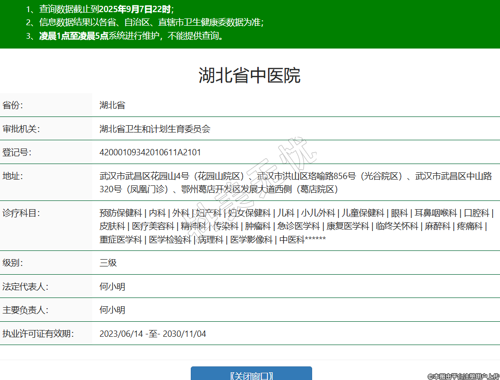 省份:湖北省審批機關:湖北省衛(wèi)生和計劃生育委員會登記號:42000109342010611A2101地址:武漢市武昌區(qū)花園山4號(花園山院區(qū))、武漢市洪山區(qū)珞喻路856號(光谷院區(qū))、武漢市武昌區(qū)中山路320號(鳳凰門診)、鄂州葛店開發(fā)區(qū)發(fā)展大道西側(葛店院區(qū))診療科目:預防保健科 | 內(nèi)科 | 外科 | 婦產(chǎn)科 | 婦女保健科 | 兒科 | 小兒外科 | 兒童保健科 | 眼科 | 耳鼻咽喉科 | 口腔科 | 皮膚科 | 醫(yī)療美容科 | 精神科 | 傳染科 | 腫瘤科 | 急診醫(yī)學科 | 康復醫(yī)學科 | 臨終關懷科 | 麻醉科 | 疼痛科 | 重癥醫(yī)學科 | 醫(yī)學檢驗科 | 病理科 | 醫(yī)學影像科 | 中醫(yī)科******級別:三級法定代表人:何小明主要負責人:何小明執(zhí)業(yè)許可證有效期:2023/06/14 -至- 2030/11/04 -
