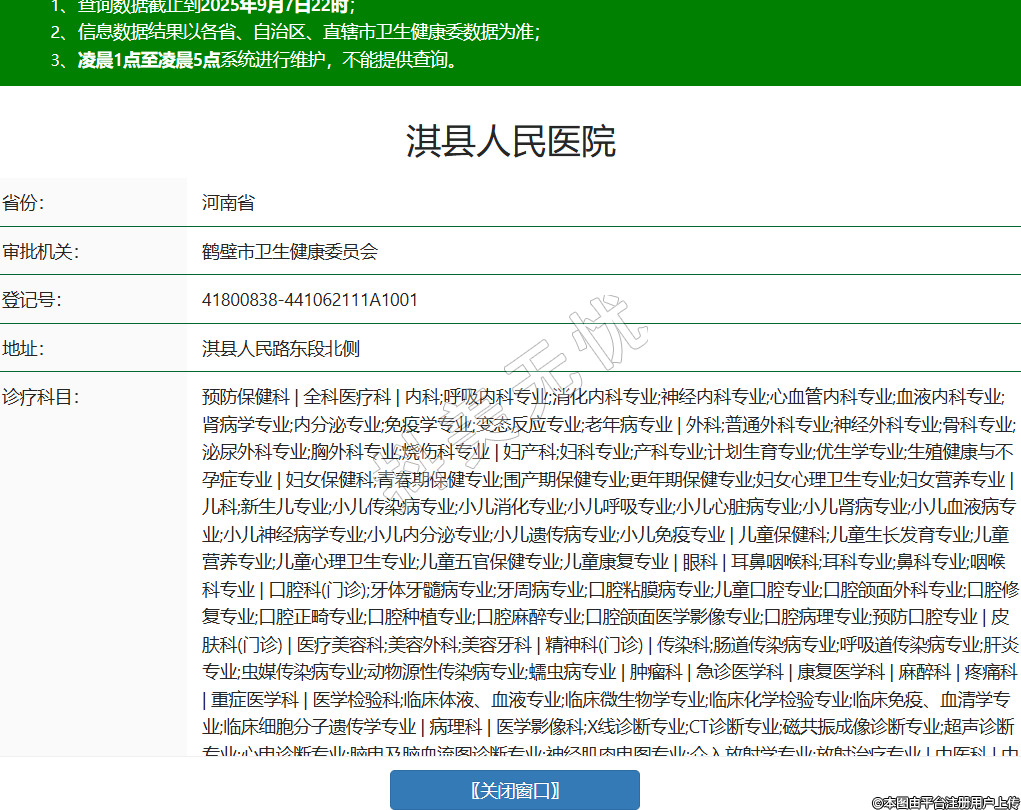 省份:河南省審批機關(guān):鶴壁市衛(wèi)生健康委員會登記號:41800838-441062111A1001地址:淇縣人民路東段北側(cè)診療科目:預(yù)防保健科 | 全科醫(yī)療科 | 內(nèi)科;呼吸內(nèi)科專業(yè);消化內(nèi)科專業(yè);神經(jīng)內(nèi)科專業(yè);心血管內(nèi)科專業(yè);血液內(nèi)科專業(yè);腎病學(xué)專業(yè);內(nèi)分泌專業(yè);免疫學(xué)專業(yè);變態(tài)反應(yīng)專業(yè);老年病專業(yè) | 外科;普通外科專業(yè);神經(jīng)外科專業(yè);骨科專業(yè);泌尿外科專業(yè);胸外科專業(yè);燒傷科專業(yè) | 婦產(chǎn)科;婦科專業(yè);產(chǎn)科專業(yè);計劃生育專業(yè);優(yōu)生學(xué)專業(yè);生殖健康與不孕癥專業(yè) | 婦女保健科;青春期保健專業(yè);圍產(chǎn)期保健專業(yè);更年期保健專業(yè);婦女心理衛(wèi)生專業(yè);婦女營養(yǎng)專業(yè) | 兒科;新生兒專業(yè);小兒傳染病專業(yè);小兒消化專業(yè);小兒呼吸專業(yè);小兒心臟病專業(yè);小兒腎病專業(yè);小兒血液病專業(yè);小兒神經(jīng)病學(xué)專業(yè);小兒內(nèi)分泌專業(yè);小兒遺傳病專業(yè);小兒免疫專業(yè) | 兒童保健科;兒童生長發(fā)育專業(yè);兒童營養(yǎng)專業(yè);兒童心理衛(wèi)生專業(yè);兒童五官保健專業(yè);兒童康復(fù)專業(yè) | 眼科 | 耳鼻咽喉科;耳科專業(yè);鼻科專業(yè);咽喉科專業(yè) | 口腔科(門診);牙體牙髓病專業(yè);牙周病專業(yè);口腔粘膜病專業(yè);兒童口腔專業(yè);口腔頜面外科專業(yè);口腔修復(fù)專業(yè);口腔正畸專業(yè);口腔種植專業(yè);口腔麻醉專業(yè);口腔頜面醫(yī)學(xué)影像專業(yè);口腔病理專業(yè);預(yù)防口腔專業(yè) | 皮膚科(門診) | 醫(yī)療美容科;美容外科;美容牙科 | 精神科(門診) | 傳染科;腸道傳染病專業(yè);呼吸道傳染病專業(yè);肝炎專業(yè);蟲媒傳染病專業(yè);動物源性傳染病專業(yè);蠕蟲病專業(yè) | 腫瘤科 | 急診醫(yī)學(xué)科 | 康復(fù)醫(yī)學(xué)科 | 麻醉科 | 疼痛科 | 重癥醫(yī)學(xué)科 | 醫(yī)學(xué)檢驗科;臨床體液、血液專業(yè);臨床微生物學(xué)專業(yè);臨床化學(xué)檢驗專業(yè);臨床免疫、血清學(xué)專業(yè);臨床細胞分子遺傳學(xué)專業(yè) | 病理科 | 醫(yī)學(xué)影像科;X線診斷專業(yè);CT診斷專業(yè);磁共振成像診斷專業(yè);超聲診斷專業(yè);心電診斷專業(yè);腦電及腦血流圖診斷專業(yè);神經(jīng)肌肉電圖專業(yè);介入放射學(xué)專業(yè);放射治療專業(yè) | 中醫(yī)科 | 中西醫(yī)結(jié)合科******級別:三級法定代表人:李寶生主要負責(zé)人:李寶生執(zhí)業(yè)許可證有效期:2025/01/07 -至- 2038/01/18 -