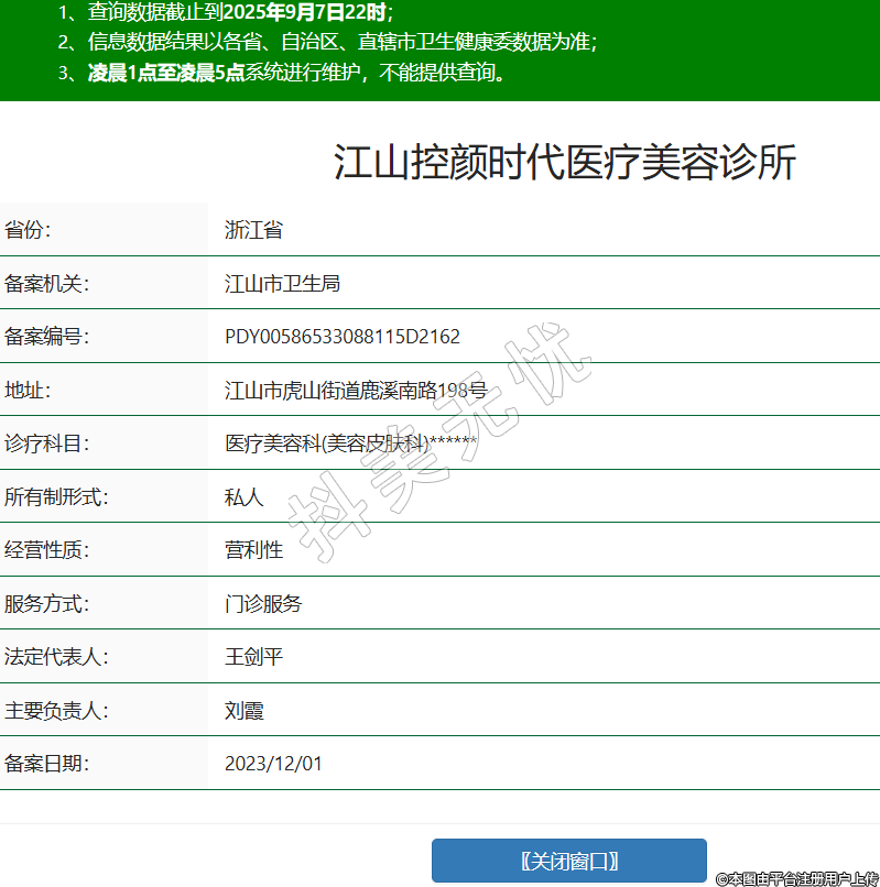 省份:浙江省備案機關:江山市衛(wèi)生局備案編號:PDY00586533088115D2162地址:江山市虎山街道鹿溪南路198號診療科目:醫(yī)療美容科(美容皮膚科)******所有制形式:私人經(jīng)營性質(zhì):營利性服務方式:門診服務法定代表人:王劍平主要負責人:劉霞備案日期:2023/12/01 -