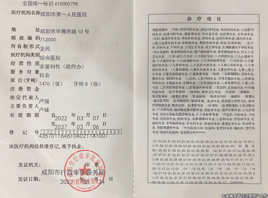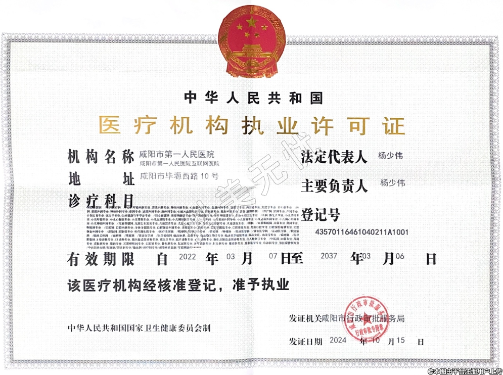 發(fā)證機關(guān):咸陽市衛(wèi)生健康委員會