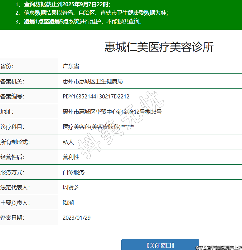 惠城仁美醫(yī)療美容診所,診療科目:醫(yī)療美容科(美容皮膚科)******