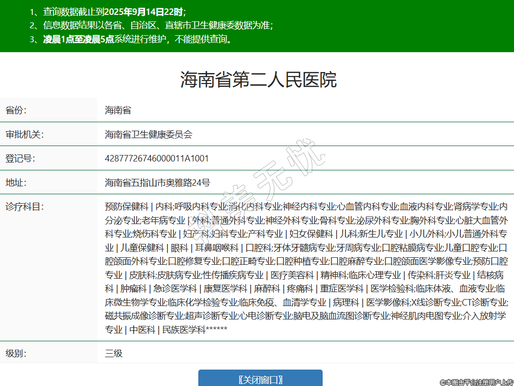 省份:海南省審批機(jī)關(guān):海南省衛(wèi)生健康委員會(huì)登記號(hào):42877726746000011A1001地址:海南省五指山市奧雅路24號(hào)診療科目:預(yù)防保健科 | 內(nèi)科;呼吸內(nèi)科專業(yè);消化內(nèi)科專業(yè);神經(jīng)內(nèi)科專業(yè);心血管內(nèi)科專業(yè);血液內(nèi)科專業(yè);腎病學(xué)專業(yè);內(nèi)分泌專業(yè);老年病專業(yè) | 外科;普通外科專業(yè);神經(jīng)外科專業(yè);骨科專業(yè);泌尿外科專業(yè);胸外科專業(yè);心臟大血管外科專業(yè);燒傷科專業(yè) | 婦產(chǎn)科;婦科專業(yè);產(chǎn)科專業(yè) | 婦女保健科 | 兒科;新生兒專業(yè) | 小兒外科;小兒普通外科專業(yè) | 兒童保健科 | 眼科 | 耳鼻咽喉科 | 口腔科;牙體牙髓病專業(yè);牙周病專業(yè);口腔粘膜病專業(yè);兒童口腔專業(yè);口腔頜面外科專業(yè);口腔修復(fù)專業(yè);口腔正畸專業(yè);口腔種植專業(yè);口腔麻醉專業(yè);口腔頜面醫(yī)學(xué)影像專業(yè);預(yù)防口腔專業(yè) | 皮膚科;皮膚病專業(yè);性傳播疾病專業(yè) | 醫(yī)療美容科 | 精神科;臨床心理專業(yè) | 傳染科;肝炎專業(yè) | 結(jié)核病科 | 腫瘤科 | 急診醫(yī)學(xué)科 | 康復(fù)醫(yī)學(xué)科 | 麻醉科 | 疼痛科 | 重癥醫(yī)學(xué)科 | 醫(yī)學(xué)檢驗(yàn)科;臨床體液、血液專業(yè);臨床微生物學(xué)專業(yè);臨床化學(xué)檢驗(yàn)專業(yè);臨床免疫、血清學(xué)專業(yè) | 病理科 | 醫(yī)學(xué)影像科;X線診斷專業(yè);CT診斷專業(yè);磁共振成像診斷專業(yè);超聲診斷專業(yè);心電診斷專業(yè);腦電及腦血流圖診斷專業(yè);神經(jīng)肌肉電圖專業(yè);介入放射學(xué)專業(yè) | 中醫(yī)科 | 民族醫(yī)學(xué)科******級(jí)別:三級(jí)法定代表人:彭浩主要負(fù)責(zé)人:彭浩執(zhí)業(yè)許可證有效期:2024/06/26 -至- 2039/06/25 -