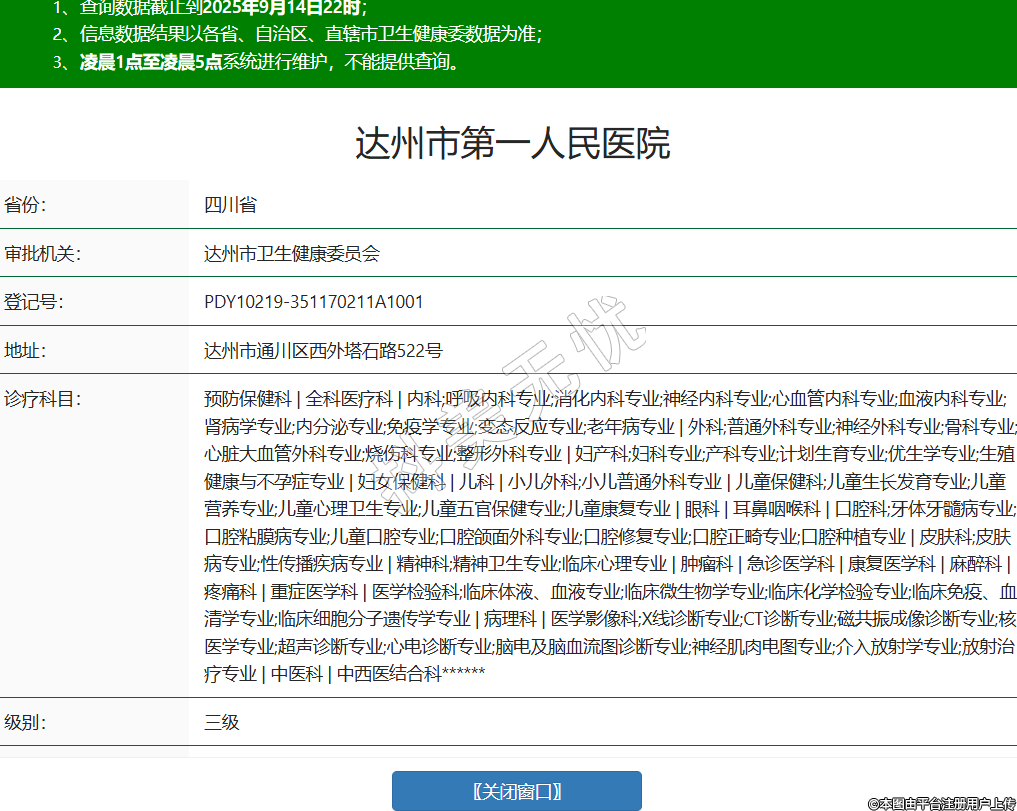 省份:四川省審批機關(guān):達(dá)州市衛(wèi)生健康委員會登記號:PDY10219-351170211A1001地址:達(dá)州市通川區(qū)西外塔石路522號診療科目:級別:三級法定代表人:祝彪主要負(fù)責(zé)人:祝彪執(zhí)業(yè)許可證有效期:2024/04/30 -至- 2039/04/29 -