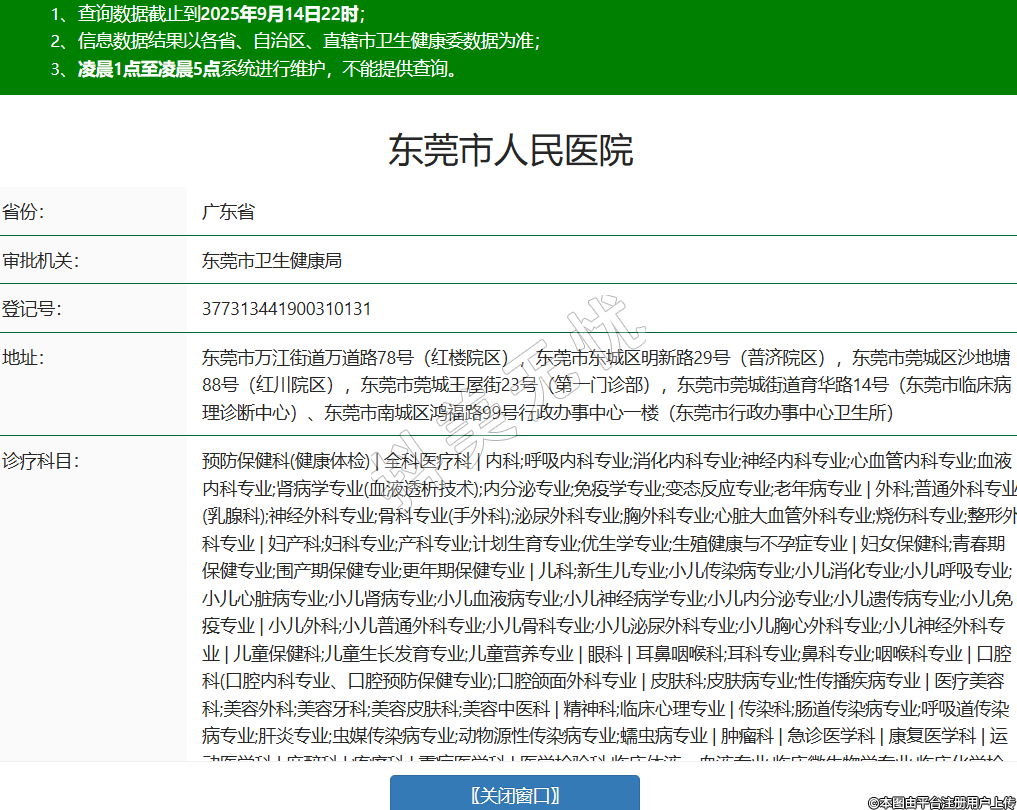 省份:廣東省審批機(jī)關(guān):東莞市衛(wèi)生健康局登記號:377313441900310131地址:東莞市萬江街道萬道路78號(紅樓院區(qū)),東莞市東城區(qū)明新路29號(普濟(jì)院區(qū)),東莞市莞城區(qū)沙地塘88號(紅川院區(qū)),東莞市莞城王屋街23號(第一門診部),東莞市莞城街道育華路14號(東莞市臨床病理診斷中心)、東莞市南城區(qū)鴻福路99號行政辦事中心一樓(東莞市行政辦事中心衛(wèi)生所)診療科目:預(yù)防保健科(健康體檢) | 全科醫(yī)療科 | 內(nèi)科;呼吸內(nèi)科專業(yè);消化內(nèi)科專業(yè);神經(jīng)內(nèi)科專業(yè);心血管內(nèi)科專業(yè);血液內(nèi)科專業(yè);腎病學(xué)專業(yè)(血液透析技術(shù));內(nèi)分泌專業(yè);免疫學(xué)專業(yè);變態(tài)反應(yīng)專業(yè);老年病專業(yè) | 外科;普通外科專業(yè)(乳腺科);神經(jīng)外科專業(yè);骨科專業(yè)(手外科);泌尿外科專業(yè);胸外科專業(yè);心臟大血管外科專業(yè);燒傷科專業(yè);整形外科專業(yè) | 婦產(chǎn)科;婦科專業(yè);產(chǎn)科專業(yè);計(jì)劃生育專業(yè);優(yōu)生學(xué)專業(yè);生殖健康與不孕癥專業(yè) | 婦女保健科;青春期保健專業(yè);圍產(chǎn)期保健專業(yè);更年期保健專業(yè) | 兒科;新生兒專業(yè);小兒傳染病專業(yè);小兒消化專業(yè);小兒呼吸專業(yè);小兒心臟病專業(yè);小兒腎病專業(yè);小兒血液病專業(yè);小兒神經(jīng)病學(xué)專業(yè);小兒內(nèi)分泌專業(yè);小兒遺傳病專業(yè);小兒免疫專業(yè) | 小兒外科;小兒普通外科專業(yè);小兒骨科專業(yè);小兒泌尿外科專業(yè);小兒胸心外科專業(yè);小兒神經(jīng)外科專業(yè) | 兒童保健科;兒童生長發(fā)育專業(yè);兒童營養(yǎng)專業(yè) | 眼科 | 耳鼻咽喉科;耳科專業(yè);鼻科專業(yè);咽喉科專業(yè) | 口腔科(口腔內(nèi)科專業(yè)、口腔預(yù)防保健專業(yè));口腔頜面外科專業(yè) | 皮膚科;皮膚病專業(yè);性傳播疾病專業(yè) | 醫(yī)療美容科;美容外科;美容牙科;美容皮膚科;美容中醫(yī)科 | 精神科;臨床心理專業(yè) | 傳染科;腸道傳染病專業(yè);呼吸道傳染病專業(yè);肝炎專業(yè);蟲媒傳染病專業(yè);動(dòng)物源性傳染病專業(yè);蠕蟲病專業(yè) | 腫瘤科 | 急診醫(yī)學(xué)科 | 康復(fù)醫(yī)學(xué)科 | 運(yùn)動(dòng)醫(yī)學(xué)科 | 麻醉科 | 疼痛科 | 重癥醫(yī)學(xué)科 | 醫(yī)學(xué)檢驗(yàn)科;臨床體液、血液專業(yè);臨床微生物學(xué)專業(yè);臨床化學(xué)檢驗(yàn)專業(yè);臨床免疫、血清學(xué)專業(yè);臨床細(xì)胞分子遺傳學(xué)專業(yè) | 病理科 | 醫(yī)學(xué)影像科;X線診斷專業(yè);CT診斷專業(yè);磁共振成像診斷專業(yè);核醫(yī)學(xué)專業(yè);超聲診斷專業(yè);心電診斷專業(yè);腦電及腦血流圖診斷專業(yè);神經(jīng)肌肉電圖專業(yè);介入放射學(xué)專業(yè);放射治療專業(yè) | 中醫(yī)科;內(nèi)科專業(yè);外科專業(yè);婦產(chǎn)科專業(yè);兒科專業(yè);皮膚科專業(yè);眼科專業(yè);耳鼻咽喉科專業(yè);口腔科專業(yè);腫瘤科專業(yè);骨傷科專業(yè);肛腸科專業(yè);老年病科專業(yè);針灸科專業(yè);推拿科專業(yè);康復(fù)醫(yī)學(xué)專業(yè);急診科專業(yè);預(yù)防保健科專業(yè) | 中西醫(yī)結(jié)合科******級別:三級法定代表人:袁耀欽主要負(fù)責(zé)人:袁耀欽執(zhí)業(yè)許可證有效期:2023/06/30 -至- 2031/05/20 -