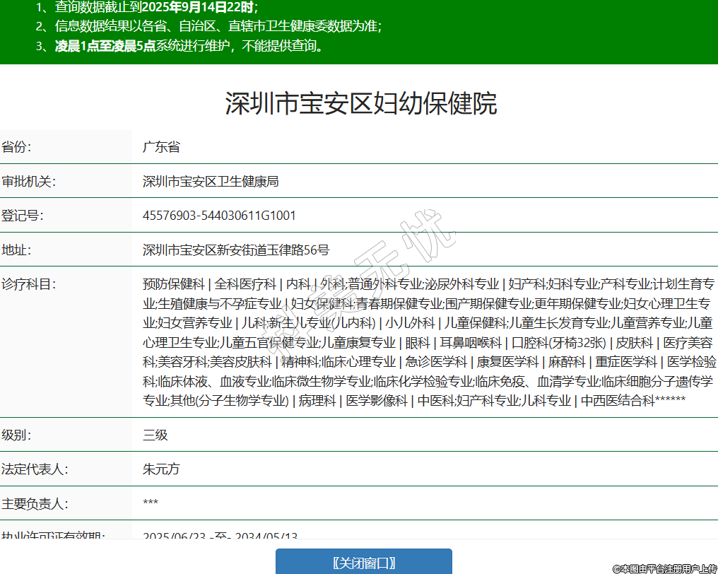 省份:廣東省審批機(jī)關(guān):深圳市寶安區(qū)衛(wèi)生健康局登記號:45576903-544030611G1001地址:深圳市寶安區(qū)新安街道玉律路56號診療科目:預(yù)防保健科 | 全科醫(yī)療科 | 內(nèi)科 | 外科;普通外科專業(yè);泌尿外科專業(yè) | 婦產(chǎn)科;婦科專業(yè);產(chǎn)科專業(yè);計(jì)劃生育專業(yè);生殖健康與不孕癥專業(yè) | 婦女保健科;青春期保健專業(yè);圍產(chǎn)期保健專業(yè);更年期保健專業(yè);婦女心理衛(wèi)生專業(yè);婦女營養(yǎng)專業(yè) | 兒科;新生兒專業(yè)(兒內(nèi)科) | 小兒外科 | 兒童保健科;兒童生長發(fā)育專業(yè);兒童營養(yǎng)專業(yè);兒童心理衛(wèi)生專業(yè);兒童五官保健專業(yè);兒童康復(fù)專業(yè) | 眼科 | 耳鼻咽喉科 | 口腔科(牙椅32張) | 皮膚科 | 醫(yī)療美容科;美容牙科;美容皮膚科 | 精神科;臨床心理專業(yè) | 急診醫(yī)學(xué)科 | 康復(fù)醫(yī)學(xué)科 | 麻醉科 | 重癥醫(yī)學(xué)科 | 醫(yī)學(xué)檢驗(yàn)科;臨床體液、血液專業(yè);臨床微生物學(xué)專業(yè);臨床化學(xué)檢驗(yàn)專業(yè);臨床免疫、血清學(xué)專業(yè);臨床細(xì)胞分子遺傳學(xué)專業(yè);其他(分子生物學(xué)專業(yè)) | 病理科 | 醫(yī)學(xué)影像科 | 中醫(yī)科;婦產(chǎn)科專業(yè);兒科專業(yè) | 中西醫(yī)結(jié)合科******級別:三級法定代表人:朱元方主要負(fù)責(zé)人:***執(zhí)業(yè)許可證有效期:2025/06/23 -至- 2034/05/13 -