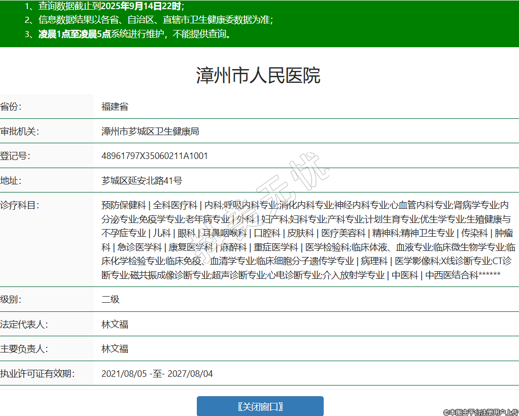 省份:福建省審批機關:漳州市薌城區(qū)衛(wèi)生健康局登記號:48961797X35060211A1001地址:薌城區(qū)延安北路41號診療科目:預防保健科 | 全科醫(yī)療科 | 內科;呼吸內科專業(yè);消化內科專業(yè);神經(jīng)內科專業(yè);心血管內科專業(yè);腎病學專業(yè);內分泌專業(yè);免疫學專業(yè);老年病專業(yè) | 外科 | 婦產(chǎn)科;婦科專業(yè);產(chǎn)科專業(yè);計劃生育專業(yè);優(yōu)生學專業(yè);生殖健康與不孕癥專業(yè) | 兒科 | 眼科 | 耳鼻咽喉科 | 口腔科 | 皮膚科 | 醫(yī)療美容科 | 精神科;精神衛(wèi)生專業(yè) | 傳染科 | 腫瘤科 | 急診醫(yī)學科 | 康復醫(yī)學科 | 麻醉科 | 重癥醫(yī)學科 | 醫(yī)學檢驗科;臨床體液、血液專業(yè);臨床微生物學專業(yè);臨床化學檢驗專業(yè);臨床免疫、血清學專業(yè);臨床細胞分子遺傳學專業(yè) | 病理科 | 醫(yī)學影像科;X線診斷專業(yè);CT診斷專業(yè);磁共振成像診斷專業(yè);超聲診斷專業(yè);心電診斷專業(yè);介入放射學專業(yè) | 中醫(yī)科 | 中西醫(yī)結合科******級別:二級法定代表人:林文福主要負責人:林文福執(zhí)業(yè)許可證有效期:2021/08/05 -至- 2027/08/04 -