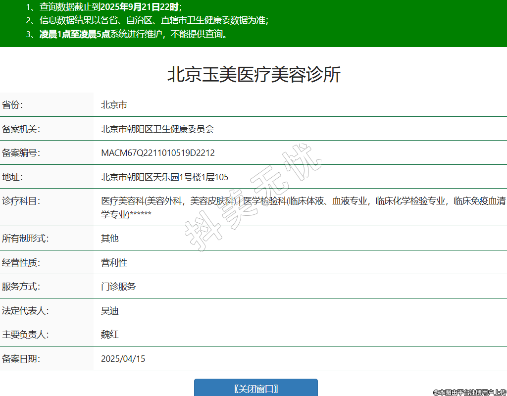 省份:北京市備案機(jī)關(guān):北京市朝陽(yáng)區(qū)衛(wèi)生健康委員會(huì)備案編號(hào):MACM67Q2211010519D2212地址:北京市朝陽(yáng)區(qū)天樂(lè)園1號(hào)樓1層105診療科目:醫(yī)療美容科(美容外科,美容皮膚科) | 醫(yī)學(xué)檢驗(yàn)科(臨床體液、血液專業(yè),臨床化學(xué)檢驗(yàn)專業(yè),臨床免疫血清學(xué)專業(yè))******所有制形式:其他經(jīng)營(yíng)性質(zhì):營(yíng)利性服務(wù)方式:門(mén)診服務(wù)法定代表人:吳迪主要負(fù)責(zé)人:魏紅備案日期:2025/04/15 -