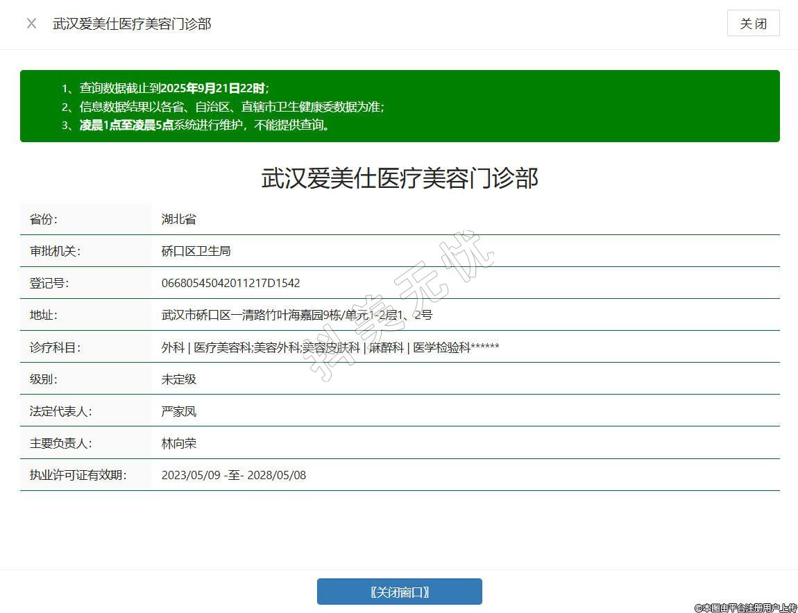 武漢愛美仕醫(yī)療美容門診部于2013年成立,坐落于武漢市硚口區(qū)一清路竹葉海嘉園9棟/單元1-2層1、2號,是經合規(guī)審批的專業(yè)醫(yī)療美容機構,成立多年來深耕醫(yī)美領域,匯聚了專業(yè)的醫(yī)生團隊,依托先進的醫(yī)療設備與標準化診療流程,形成整形外科、皮膚美容等特色服務板塊,始終秉持專業(yè)誠信的服務理念,以規(guī)范醫(yī)療服務贏得顧客認可。