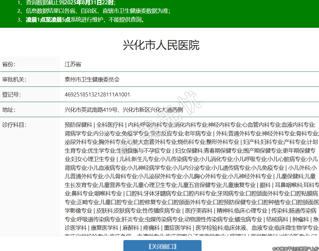 省份:江蘇省審批機(jī)關(guān):泰州市衛(wèi)生健康委員會(huì)登記號(hào):46925185132128111A1001地址:興化市英武南路419號(hào)、興化市新區(qū)興化大道西側(cè)診療科目:預(yù)防保健科 | 全科醫(yī)療科 | 內(nèi)科;呼吸內(nèi)科專(zhuān)業(yè);消化內(nèi)科專(zhuān)業(yè);神經(jīng)內(nèi)科專(zhuān)業(yè);心血管內(nèi)科專(zhuān)業(yè);血液內(nèi)科專(zhuān)業(yè);腎病學(xué)專(zhuān)業(yè);內(nèi)分泌專(zhuān)業(yè);免疫學(xué)專(zhuān)業(yè);變態(tài)反應(yīng)專(zhuān)業(yè);老年病專(zhuān)業(yè) | 外科;普通外科專(zhuān)業(yè);神經(jīng)外科專(zhuān)業(yè);骨科專(zhuān)業(yè);泌尿外科專(zhuān)業(yè);胸外科專(zhuān)業(yè);心臟大血管外科專(zhuān)業(yè);燒傷科專(zhuān)業(yè);整形外科專(zhuān)業(yè) | 婦產(chǎn)科;婦科專(zhuān)業(yè);產(chǎn)科專(zhuān)業(yè);計(jì)劃生育專(zhuān)業(yè);優(yōu)生學(xué)專(zhuān)業(yè);生殖健康與不孕癥專(zhuān)業(yè) | 婦女保健科;青春期保健專(zhuān)業(yè);圍產(chǎn)期保健專(zhuān)業(yè);更年期保健專(zhuān)業(yè);婦女心理衛(wèi)生專(zhuān)業(yè) | 兒科;新生兒專(zhuān)業(yè);小兒傳染病專(zhuān)業(yè);小兒消化專(zhuān)業(yè);小兒呼吸專(zhuān)業(yè);小兒心臟病專(zhuān)業(yè);小兒腎病專(zhuān)業(yè);小兒血液病專(zhuān)業(yè);小兒神經(jīng)病學(xué)專(zhuān)業(yè);小兒內(nèi)分泌專(zhuān)業(yè);小兒遺傳病專(zhuān)業(yè);小兒免疫專(zhuān)業(yè) | 小兒外科;小兒普通外科專(zhuān)業(yè);小兒骨科專(zhuān)業(yè);小兒泌尿外科專(zhuān)業(yè);小兒胸心外科專(zhuān)業(yè);小兒神經(jīng)外科專(zhuān)業(yè) | 兒童保健科;兒童生長(zhǎng)發(fā)育專(zhuān)業(yè);兒童營(yíng)養(yǎng)專(zhuān)業(yè);兒童心理衛(wèi)生專(zhuān)業(yè);兒童五官保健專(zhuān)業(yè);兒童康復(fù)專(zhuān)業(yè) | 眼科 | 耳鼻咽喉科;耳科專(zhuān)業(yè);鼻科專(zhuān)業(yè);咽喉科專(zhuān)業(yè) | 口腔科;牙體牙髓病專(zhuān)業(yè);口腔內(nèi)科專(zhuān)業(yè);牙周病專(zhuān)業(yè);口腔頜面外科專(zhuān)業(yè);口腔粘膜病專(zhuān)業(yè);正畸專(zhuān)業(yè);兒童口腔專(zhuān)業(yè);口腔修復(fù)專(zhuān)業(yè);口腔頜面外科專(zhuān)業(yè);口腔預(yù)防保健專(zhuān)業(yè);口腔種植專(zhuān)業(yè);口腔頜面醫(yī)學(xué)影像專(zhuān)業(yè) | 皮膚科;皮膚病專(zhuān)業(yè);性傳播疾病專(zhuān)業(yè) | 醫(yī)療美容科 | 精神科;臨床心理專(zhuān)業(yè) | 傳染科;腸道傳染病專(zhuān)業(yè);呼吸道傳染病專(zhuān)業(yè);肝炎專(zhuān)業(yè);蟲(chóng)媒傳染病專(zhuān)業(yè);動(dòng)物源性傳染病專(zhuān)業(yè);蠕蟲(chóng)病專(zhuān)業(yè) | 結(jié)核病科 | 腫瘤科 | 急診醫(yī)學(xué)科 | 康復(fù)醫(yī)學(xué)科 | 麻醉科 | 疼痛科 | 重癥醫(yī)學(xué)科 | 醫(yī)學(xué)檢驗(yàn)科;臨床體液、血液專(zhuān)業(yè);臨床微生物學(xué)專(zhuān)業(yè);臨床化學(xué)檢驗(yàn)專(zhuān)業(yè);臨床免疫、血清學(xué)專(zhuān)業(yè);臨床細(xì)胞分子遺傳學(xué)專(zhuān)業(yè) | 病理科 | 醫(yī)學(xué)影像科;X線診斷專(zhuān)業(yè);CT診斷專(zhuān)業(yè);磁共振成像診斷專(zhuān)業(yè);核醫(yī)學(xué)專(zhuān)業(yè);超聲診斷專(zhuān)業(yè);心電診斷專(zhuān)業(yè);腦電及腦血流圖診斷專(zhuān)業(yè);神經(jīng)肌肉電圖專(zhuān)業(yè);介入放射學(xué)專(zhuān)業(yè);放射治療專(zhuān)業(yè) | 中醫(yī)科;內(nèi)科專(zhuān)業(yè);外科專(zhuān)業(yè);婦產(chǎn)科專(zhuān)業(yè);兒科專(zhuān)業(yè);皮膚科專(zhuān)業(yè);腫瘤科專(zhuān)業(yè);骨傷科專(zhuān)業(yè);肛腸科專(zhuān)業(yè);老年病科專(zhuān)業(yè);針灸科專(zhuān)業(yè);推拿科專(zhuān)業(yè);康復(fù)醫(yī)學(xué)專(zhuān)業(yè);預(yù)防保健科專(zhuān)業(yè) | 中西醫(yī)結(jié)合科******級(jí)別:三級(jí)法定代表人:鄧新桃主要負(fù)責(zé)人:鄧新桃執(zhí)業(yè)許可證有效期:2022/07/20 -至- 2037/07/19 -