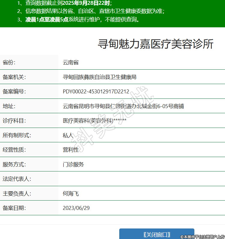 省份:云南省備案機(jī)關(guān):尋甸回族彝族自治縣衛(wèi)生健康局備案編號(hào):PDY00022-453012917D2212地址:云南省昆明市尋甸縣仁德街道辦北城金街6-05號(hào)商鋪診療科目:醫(yī)療美容科(美容外科)******所有制形式:私人經(jīng)營(yíng)性質(zhì):營(yíng)利性服務(wù)方式:門(mén)診服務(wù)法定代表人:主要負(fù)責(zé)人:何海飛備案日期:2023/06/29 -