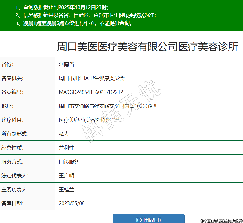 省份:河南省備案機關:周口市川匯區(qū)衛(wèi)生健康委員會備案編號:MA9GD248541160217D2212地址:周口市交通路與建安路交叉口向南100米路西診療科目:醫(yī)療美容科(美容外科)******所有制形式:私人經(jīng)營性質:營利性服務方式:門診服務法定代表人:王廣明主要負責人:王桂蘭 -