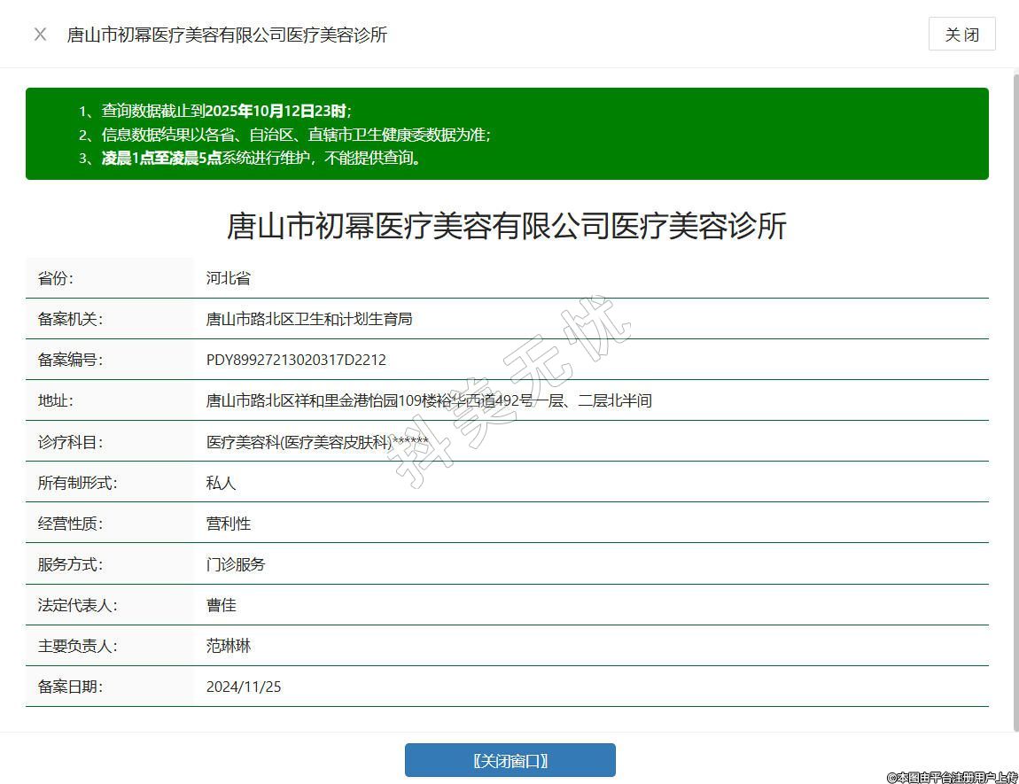 唐山市初冪醫(yī)療美容有限公司醫(yī)療美容診所