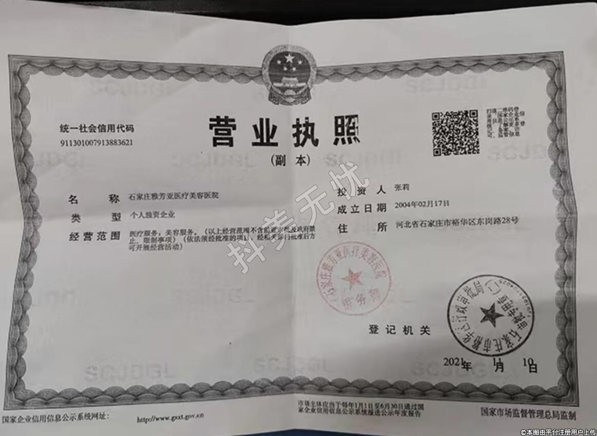 發(fā)證機(jī)關(guān):石家莊市行政審批局