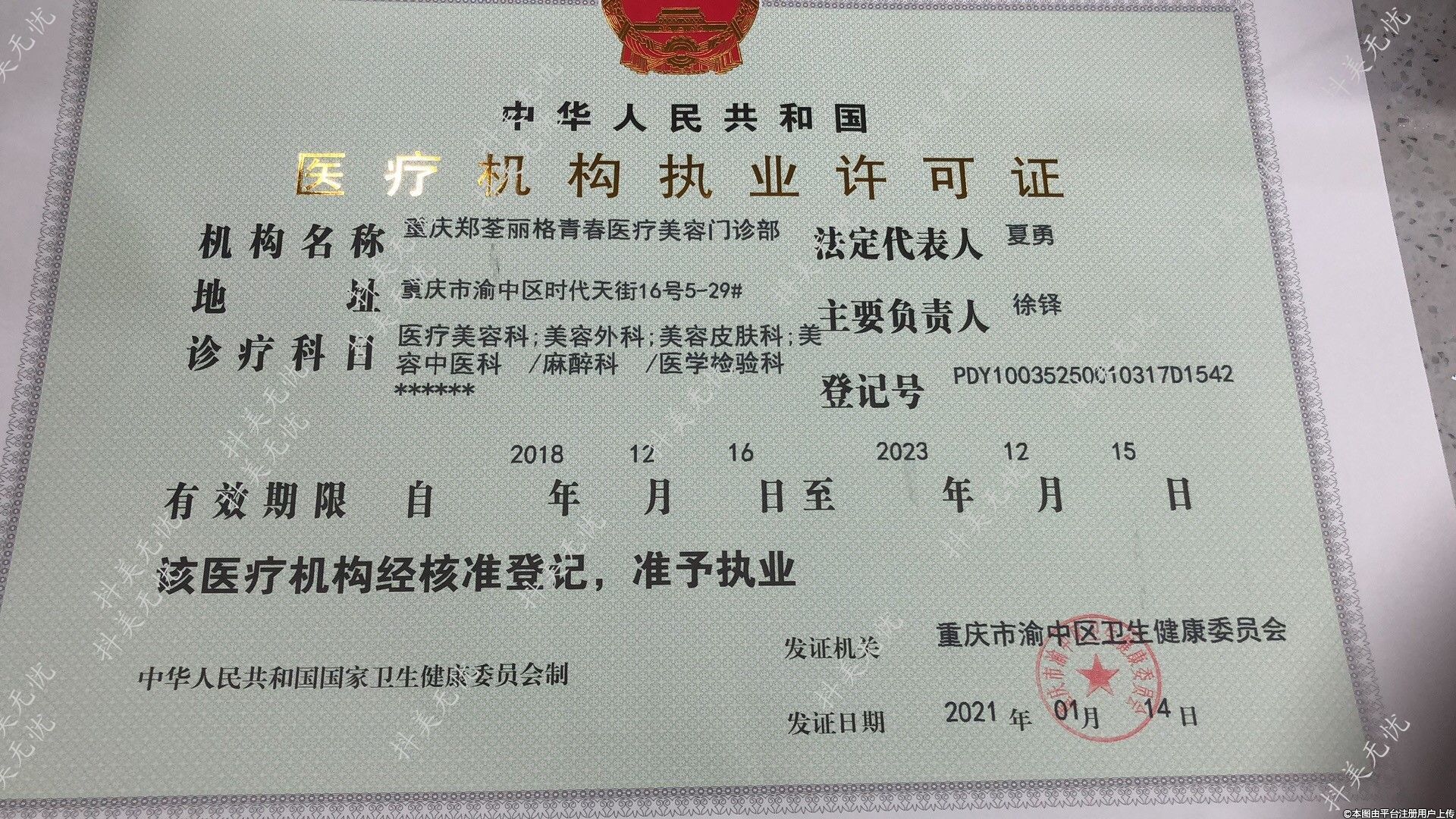 醫(yī)療機(jī)構(gòu)名稱:重慶鄭荃麗格青春醫(yī)療美容門診部