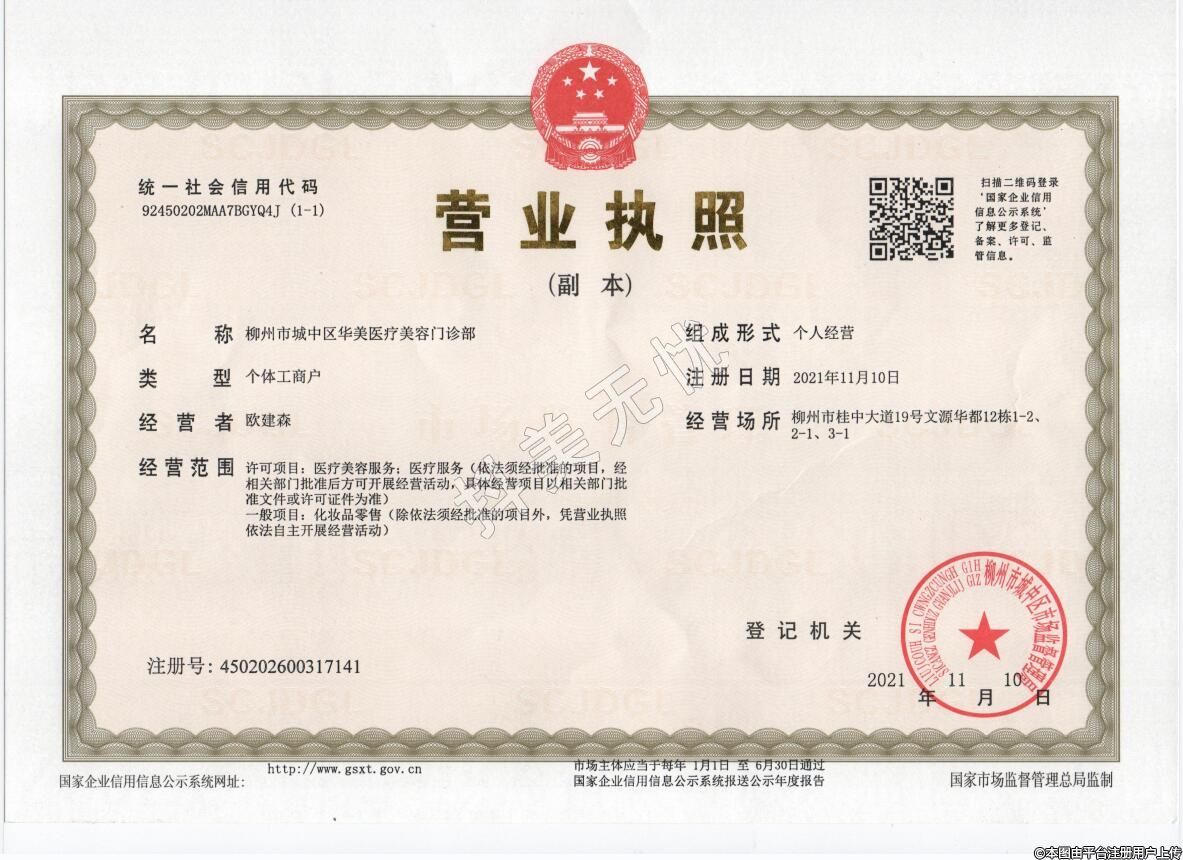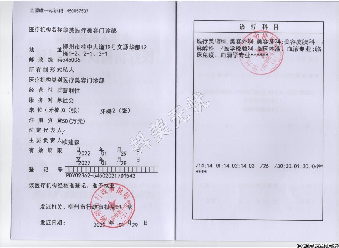 醫(yī)療機構(gòu)名稱:柳州華美醫(yī)療美容門診部