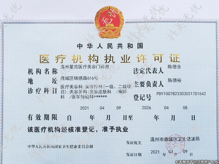 發(fā)證機關:溫州市鹿城區(qū)衛(wèi)生健康局