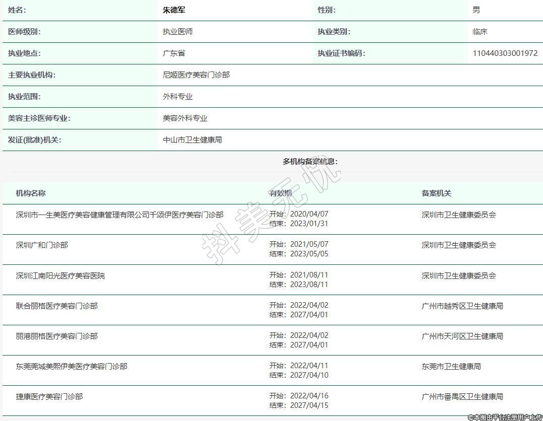 中山尼姬醫(yī)療美容醫(yī)生,先后于深圳廣和門診部、深圳市一生美醫(yī)療美容健康管理有限公司千頌伊醫(yī)療美容門診部、深圳江南陽光醫(yī)療美容醫(yī)院、聯(lián)合麗格醫(yī)療美容門診部、麗港麗格醫(yī)療美容門診部、東莞莞城美熙伊美醫(yī)療美容門診部、捷康醫(yī)療美容門診部工作。