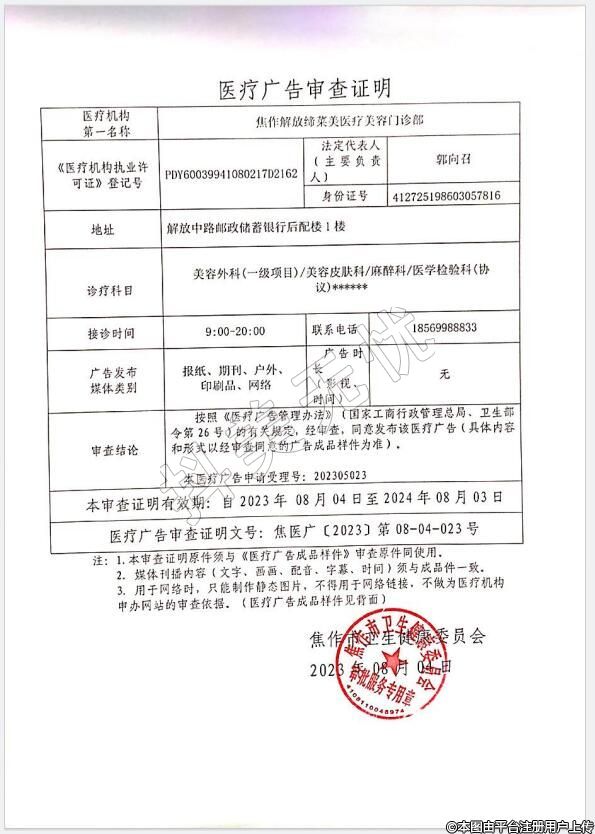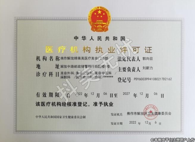 機(jī)構(gòu)名稱(chēng):焦作解放締萊美醫(yī)療美容門(mén)診部